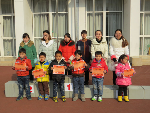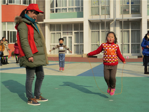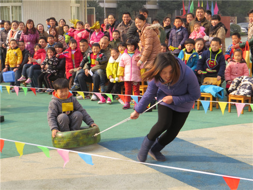 冬日的暖阳温暖校园,宽阔的赛场激情荡漾。2015年1月9日上午,龙幼第七届“健康运动节”之大班“吉尼斯”运动项目比赛在孩子们的翘首期盼下,隆重拉开了帷幕。 篇章一:活动前,我们充分备战。 本着人人参与、人人提高的原则,早在半个月前,大班年级组就向广大家长和幼儿发出了“运动节”的活动倡议。这一活动很快受到了家长们的热切关注。家长们纷纷根据自己孩子的特长,全家总动员,进行了充分备战。通过自主报名、班级选拔,最终孩子们都确定了自己的比赛项目。 篇章二:开场式,我们士气十足。 为了本次运动会的开场表演,鼓号社团和舞蹈社团在前期做了充分的准备。瞧,身着红色上衣深色裤子的小演员们,神采奕奕地向我们走来。他们敲着鼓、打着镲,威风锣鼓气势如虹,激昂整齐的锣鼓声充盈了整个操场。舞蹈社团小朋友们给大家带来的舞蹈《拉拉队》也是精彩纷呈。孩子们充满力量的动作、整齐划一的造型充分展示了龙幼孩子的飒爽风采,立刻振奋了所有运动员的士气。虽然只有短短几分钟,但孩子们精彩的演出掀起了一次又一次高潮,掌声、欢呼声此起彼伏。 篇章三:亲子赛,我们欢乐无限。 “今天我爸爸陪我来的”、“今天我妈妈来参加”、“我和爸爸在家里还练习了呢”……在孩子的一片欢谈中,今天的亲子比赛项目开始了。“勇往直前”和“20米往返跑”因为有了爸爸妈妈的参与而更加竞争激烈。家长和孩子一起在比赛中创造奇迹、挑战自我,校园里也荡漾着别有一番滋味的浓浓亲情。家长们和孩子们默契配合的风采不时赢得了观众们的阵阵喝彩,操场四周,加油声、呐喊声此起彼伏。 篇章四:单项赛,我们奋力拼搏。 在亲子竞技后,孩子们之间的角逐正式拉开了帷幕。今天的单项比赛有:跳绳和跳跳球。随着裁判员的一声令下,只见参加跳绳比赛的小运动员们一个比一个身手敏捷,一个比一个动作灵活,绳子“嗖、嗖”地穿越而过,节奏沉稳,场面紧张而激烈,真是扣人心弦。紧接着的“跳跳球”比赛中,小选手们飞快地甩动着脚腕,奋力拼搏,纷纷展示出了自己的最高水平,赢得观战小伙伴们的一片叫好,幼儿园里成了一片欢乐的海洋……