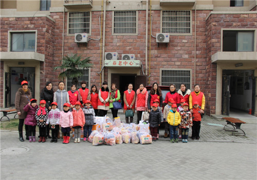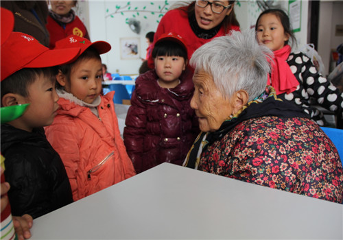伴随着龙幼第三届“爱心义卖节”的成功开展,在“润泽生命、倾听花开”的办园理念践行下,为了让孩子们更加懂得关心别人,关爱老人,也为了让善款发挥最大的作用,12月9日下午,龙虎塘中心幼儿园(腾龙园区)中班年级组的老师和孩子以及部分家长代表,一起来到新北区玲珑社区养老中心,去看望住在那里的爷爷奶奶,给他们送去冬日的温暖。 篇章一:精彩节目送欢乐 “爷爷好,奶奶好!” 孩子们一看到老人,就送上了亲切的问候。爷爷奶奶们也热情地和小朋友打招呼。“今天我们给爷爷奶奶带来了节目表演,希望你们能开心!”孩子们首先给老人们带来了灵动有趣的手指游戏。紧接着的音乐律动《健康快乐动起来》,孩子们甜甜的笑容、整齐的动作,赢得了老人们的阵阵掌声。最后,所有小朋友还精心送上了手语表演《感恩的心》。“感恩的心,感谢有你……”句句歌声正是孩子们内心的愿望,用一颗感恩的心去关怀身边的每一个人。感受着孩子们带来的快乐,爷爷奶奶的脸上也露出了幸福的笑容。 篇章二:温馨礼物献爱心 到了“送温暖”的环节,孩子们都迫不及待地把手中的礼物递给爷爷奶奶。金灿灿的橘子、有助于消化的豆花、小面包,蛋黄派,冬季保暖物品等,每份礼物都是义卖节善款所购,也是 龙幼的 老师和孩子们为老人精心挑选的。收到礼物的老人们喜笑颜开,温馨的礼物让爷爷奶奶们在平淡的日子里有了份额外的惊喜。 篇章三:深深祝福暖心窝 “爷爷这是给你的棉鞋,希望你冬天穿了它脚就不冷了,祝愿你能长命百岁!”、“奶奶,这是送你的苹果,希望你身体越来越健康,越来越年轻。”……孩子们不但给爷爷奶奶送上了礼物,还走近爷爷奶奶身边,为他们捶背、按摩手脚,陪同他们聊天,送上祝福。老人们个个乐在脸上、暖在心里,一句句关爱,一句句祝福,充满了整个现场,温馨而祥和。 爱是世界上最美丽的语言。此次活动,孩子们用自己的方式表达了对老人们的爱,亲身体验了“尊老、爱老、亲老”,接受了传统美德的洗礼,在幼小的心灵上播下了尊老、爱老、敬老的种子。