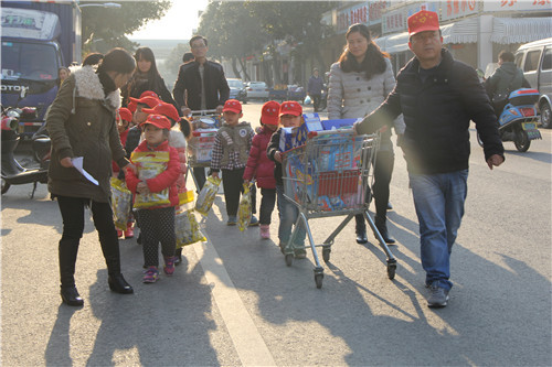 伴随着龙幼第三届“爱心义卖节”的开展,我园在家长和幼儿的支持下募得了一些善款。为了能帮助我们身边有需要的人,也为了让孩子们在这过程中体验爱,2014年12月5日,龙虎塘中心幼儿园三园区分别开展了“爱心义卖节”综合实践活动。老师、家长志愿者带领幼儿走出幼儿园,到超市为福利院的孩子、敬老院的老人购买冬季所需物品。 来到超市后,小朋友们按照计划兵分三路,分别选购生活用品、营养食品和冬季保暖用品等。孩子们根据自己的生活经验,很快找到了所需物品的摆放位置。个别幼儿还能够充分利用自己的社交能力,在遇到困难时主动地和导购阿姨交流,咨询物品的详细情况。很快,购物篮里装满了饼干、牛奶、洗衣液、尿不湿、棉拖鞋等等……大家喜颜悦色,满载而归。那一袋袋沉甸甸的物品,包含了孩子们纯纯的爱,浓浓的情。活动后期,我们还将带着我们的爱心走进福利院、敬老院,和孩子们一起用爱心诠释希望,用行动播种阳光! 爱的呼唤,爱的奉献,爱的回声,一颗颗充满爱的心灵,结下了一串又一串美丽的硕果。有爱就有阳光,有爱就能实现心中的梦想。让我们与爱相随,让关爱成为我们的习惯,让我们的校园、社会更加和谐美好! |