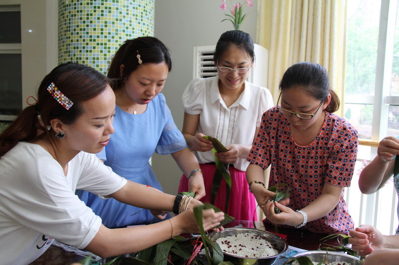 端午是一个具有文化底蕴的传统节日,而当端午节和六一节美好邂逅,又让我们的节日多了一丝特别的味道。经过团支部的前期精心策划和准备,5月30日下午,龙虎塘中心幼儿园全体教职工齐聚玲珑园区,开展了一场融趣味性和竞技性于一体的庆祝活动,让大家一起体味端午的韵味、童年的纯真。 传承经典 包粽忙 粽子的意义因为端午节而更加深远,浓浓的粽叶香加上软糯的糯米往往把我们的思绪紧紧拉住。今天的活动中,龙幼的每一位教职员工以年级组为单位,掀起了包粽子的热潮。他们每一组都有资深的包粽高手,也有创意新人。只见每个组员都是那样投入,那样欢乐,一起商讨着粽子的款式。在大家的巧手制作下,有传统款的粽子,有儿童款的摇铃粽,有精美的四角粽子……同时,老师们还将每一个粽子进行了装饰,有的用花绸带进行包装,有的用彩色丝线捆扎,粽子立刻与众不同起来!在大家制作完成后,每个年级组都派出了代表进行了粽子走秀活动,丰富的走秀形式和形象的语言描述,不断把活动推向了高潮,最后由评委们分别评选出了一、二等奖。整个活动让我们对端午又有了别样的印象! 畅想童年 欢乐多 如果说儿童节是孩子们的天堂,那么今天的“畅想童年”活动则是我们对童年的回味和重温。活动中设置的项目分别有:滚铁环、趣味羽毛球、顶球等,每个人都是那样热情高涨,欢乐洋溢在每一个人的脸上。最后,每一个人凭手中的积分圈参加套圈游戏,只见这里人头攒动,大家跃跃欲试,希望能幸运地套到自己钟爱的东西。而有的人则为自己的幸运收获,欢喜不已! 这是难忘的一天、欢乐的一天、有意义的一天,每一个龙幼人激动地沉浸在活动中。我们一路播撒、一路收获,一路携手迎向明天! 。