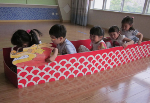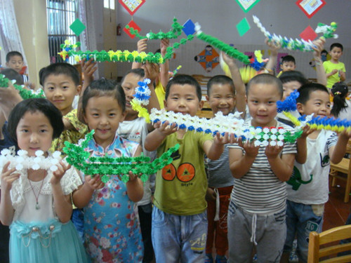 “五月五,过端午,粽叶青,糯米香……”为了让孩子们感受传统节日的魅力,了解端午的独特丰富的内涵,在端午节即将来临之际,龙虎塘中心幼儿园各年级组开展了端午节系列活动。 活动一:走进端午 “端午节”是怎么来的呢?各班教师充分利用现代化的教学设备,为幼儿们展示了有关端午节的多种知识。幼儿通过观看视频,了解了屈原的故事,激发幼儿爱家乡的情感。那“端午节”有哪些习俗呢?在老师的带领下,孩子们通过观察图片,知道了端午节有挂艾叶、佩带香包、赛龙舟、吃粽子的习俗。丰富的知识让孩子对于端午节这个传统节日有了更深入的了解。 活动二:感知端午 学学——编网兜:一到端午,大人会用细丝线编出小网兜,正好放一个鸭蛋的大小,挂在小孩儿的脖子上。五彩的丝线既漂亮又有祛邪的寓意!今天,孩子们在老师的带领下,也学着编网兜。五彩的丝线在孩子灵巧的小手中,不停地反转。孩子们时而喜悦,时而皱眉,时而微笑地请教老师,不一会儿功夫,一个个小小的网兜终于完成了。成功的喜悦不言而喻,微笑的脸庞轻轻荡漾。 试试——做龙舟:为了激发孩子们的想象力,增进幼儿的创新意识,借此传统佳节,孩子们还开展了“制作龙舟大比拼”活动呢。片片雪花在孩子们的手中自由地链接、拼插,大家相互商讨、合作。瞧,一个个形态各异的龙舟在孩子们的巧手中诞生啦! 玩玩——赛龙舟:每年农历五月这段时间都有赛龙舟的活动,孩子们从电视上知道许多有关赛龙舟活动的信息。为了满足孩子们的好奇心,今天,中班的孩子们也开展了“赛龙舟”活动。看,孩子们高涨的参与热情、激烈的比赛场面,这场“赛龙舟”比赛还真热闹! 活动三:品味端午 “品味端午”,是为了让孩子们对端午节有进一步的感知。今天下午,教室里飘溢着粽叶的清香,沉浸着节日的快乐。厨房的叔叔、阿姨特别在下午的点心时间,为孩子们准备了粽子和咸鸭蛋。瞧,孩子们品尝着“特别”的粽子和咸鸭蛋,都觉得今年端午节的味道分外香甜可口……