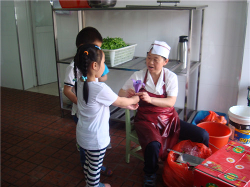 在我们的身边有这样一群人,他们为了维持园门口车辆的秩序,也为了给孩子们保驾护航,无论刮风下雨还是烈日炎炎,他们都坚守在自己的岗位上尽职尽责;还有一群人,她们每天清晨就早早地来园,为孩子们准备各种各样可口而又营养的食物……他们都是最美的劳动者,在自己的岗位上为了孩子默默的付出着。为了感谢他们的辛勤劳动,龙虎塘中心幼儿园小班的小朋友们一起走走出教室,前去慰问了这些最美的劳动者。 5月27日 上午, 孩子们带着事先准备好的礼物首先来到门卫。一看到保安爷爷,孩子们就热情地围了上去:“爷爷你辛苦了,这是我们做的花,送给你。”收到小朋友的礼物,保安师傅笑得可开心啦!接着孩子们又来到了食堂,当看到食堂里的叔叔阿姨们正在热火朝天地给小朋友们准备午餐时,孩子们不由得发出感叹:“哇!叔叔阿姨们好忙啊!真辛苦!”“叔叔阿姨,谢谢你们给我们准备的饭菜,可好吃了!”……一声声稚嫩的问候让厨房的工作人员体会了孩子们发自内心的感谢,一个个笑得合不拢嘴。 通过此次幼儿园活动的开展,让幼儿进一步认识了周围的劳动人民,萌发热爱、尊重劳动人民的情感,懂得珍惜劳动人民的成果,同时也让孩子传承了“劳动最光荣”的传统美德。亲爱的孩子们,让我们一起向所有的劳动者说一声:“你们辛苦了!” |