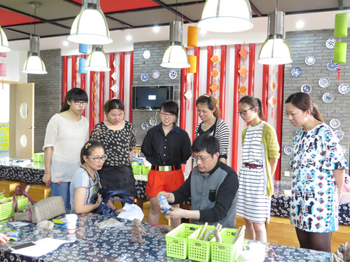 一直以来,为了打造园所文化,我园致力于陶艺的研究,而陶艺也是我园的特色活动之一。5月23号下午4点,龙虎塘中心幼儿园特邀江苏省中小学陶艺教育中心副秘书长——常州市博爱路小学王海岩老师来园,为老师们进行了一场题为“少儿陶艺制作技巧与创作思路探讨”的专题知识讲座。 本次活动吸引了我园美术学科组的老师和部分对陶艺感兴趣的老师一起参与。活动中,王老师从人文化、人本化的“现代陶艺”开始切入,向老师们介绍了陶艺的制作方法,从泥板成型、捏塑、泥塑成型、素坯彩绘,王老师毫无保留地一一进行了详细讲述。接着,王老师深入浅出地向老师们解读了陶艺创新大赛的评分标准和注意点,并给我们带来了“迎世博创新大赛”小学生陶艺作品图片,鼓励教师们拓宽思路,积极参与。活动的最后,王老师还现场为老师们演示如何做人物造型,短短的几分钟,“父子嬉戏”的陶艺作品就在王老师的巧手下诞生,让在场的老师感叹不已! 此次的陶艺知识讲座活动,让龙幼的老师们对陶艺有了更专业的认识和了解。在今后的日子里,让我们一起并肩走近陶艺,提高我们的审美情趣、体验制陶的乐趣!