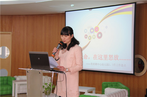 一场场酣畅淋漓的春雨,洗刷着冬季的足印。一朵朵悄然而至的小花,带给我们希望和暖阳。一年之计在于春,从开学到现在,龙幼人用自己的行动描绘着绚丽的色彩,书写着精彩的诗篇。带着对新学期开学各项工作的回顾,带着对新征途的憧憬,2014年3月31日下午,龙虎塘中心幼儿园全体教职工欢聚一堂,在宋一叶主任的组织下,进行了二、三月份工作盘点! 镜头一:工作盘点放大亮点 抓节点、勇实践,重心下移的管理团队行走在路上;敢亮剑、乐挑战,朝气蓬勃的教师团队智慧在绽放;重品质、追细节,精益求精的后勤团队激情在飞扬!伴随着舒缓的背景音乐、精心制作的PPT画面、不断变换的活动照片,宋主任主要从三个方面和大家一起回味了二、三月里龙幼人经历的每一件事。草根经验分享、读书心得交流、级组微话题讨论、行政听课、新教师随堂课、专家来园指导、“寻找春天”远足活动……精彩纷呈的活动,让我们在尝试中成长,让我们的生命重塑价值,在春天里怒放。 镜头二:最美员工 生命怒放 三月里,龙幼的每一个员工用青春抒写激情,体味着命运的历练,张开臂膀拥抱蓝天,涌现出一个个动人的故事。在本次工作盘点会议上,高亚媛园长、赵小芳副园长、王惠副园长为三月“最美员工”颁发了“特别奖励”——绿色小盆栽。一盆盆植物虽小,但在静静怒放自己的生命。正如我们龙幼人,在平凡的工作岗位上,默默奉献自己最美的年华、做最真的事。 在最美的人间四月天里,龙幼人将继续秉持“润泽生命、倾听花开”的理念,用爱心去书写,用智慧去思考,以饱满的热情,积极的态度在幼教的道路上不断前行!