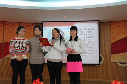 这是一次丰收的典礼。忙碌与充实的2013年是龙幼发展史上加速改革、整体转型的一年。秉承“润泽生命,倾听花开”的办园理念,我园蓄势蜕变,紧扣园所三年发展规划制定完善的新契机,在一轮又一轮的历练中实现了良性发展的积极转型,从蜕变走向新生,在新生中不断前进。高亚媛园长以《2013,我们共同走过……》为题,就教学工作、德育工作、班主任工作、后勤工作等不同的方面,以“十件大事”的形式,对我园2013年的各项工作进行了总结。高园长首先肯定了一学期来学校工作所取得的成绩,对每一位教职工的辛勤付出表示感谢。同时指出了工作中的不足之处,对下学期的工作提出改进措施,鼓励全体教师要再接再厉、善于总结、敢于突破,使学校工作迈上新台阶。