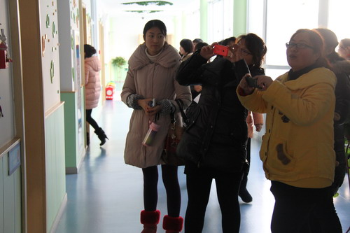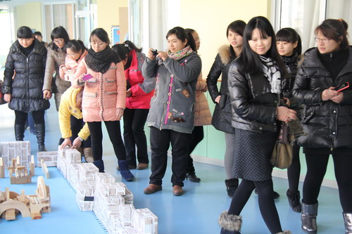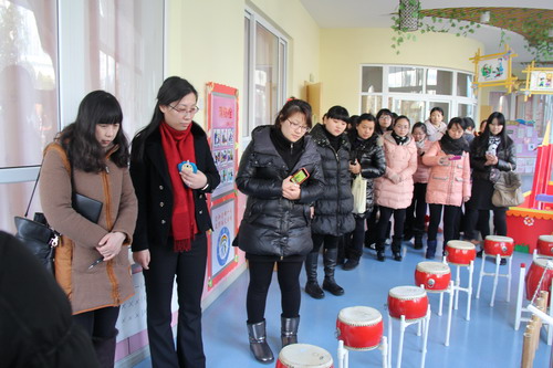 学习常常在交流和互动中进行。2014年1月14日下午,龙虎塘中心幼儿园迎来了姐妹园三井幼儿园的领导 和 老师们,对我园玲珑园区的校园环境及文化建设进行参观交流。 三井幼儿园领导和老师一行在高亚媛园长的热情陪同下,参观了我园的大厅、文化墙、区域连廊及专用活动室等园所环境。教导主任吴紫阳老师向大家详细介绍了我园“润泽生命、倾听花开”办园理念及校园文化建设的相关情况。参观中,老师们对我园优美的校园环境、主题鲜明的文化长廊、别具特色的校园文化建设等赞叹不已。她们时而拿起手机拍下心动的手工制作,时而仔细研究自制玩具的做法……很多老师被龙幼的特色文化深深打动,啧啧称赞着每一项创意! 常言道:三人行、必有我师。我园旨在和姐妹园的交流和展示中有所获益,相互促进,融入更多人的智慧,从而不断擦亮我们的品牌特色,为龙幼的明天不断奠定基石!