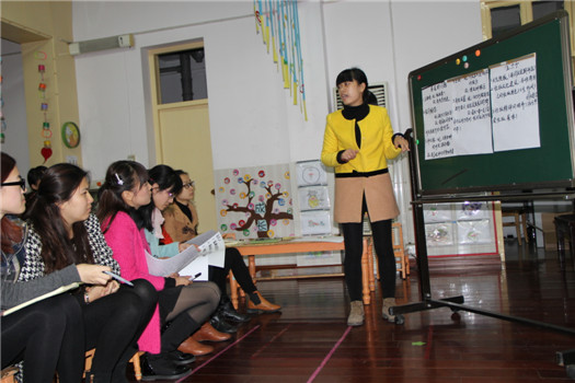 园本教研活动是我园提升教师专业素养,提高园所服务质量的一项重要措施。2013年11月18日,龙虎塘中心幼儿园的教师们以园区为单位,以“班级文化建设”为主题,展开了一场轻松而又收获满满的教研活动。 活动在轻松而又愉快的“相反游戏”中开始。紧接着,大家以年级组为单位,围绕“班级环境”、“课程环境”、“班队建设”等展开了今天的讨论。讨论中,大家就如何更好地开展班级文化建设及环境“主题性”和“互动性”的渗透提出了自己的一些想法和建议,并能够整理、分析、记录下来。在活动的最后一环节,每个年级组派代表交流发言,真正做到了将小组的智慧与大家齐分享。 每一次教研都会给大家带来思考与收获,相信本次的教研活动一定能够“反哺”今后的实践,为今后的班级文化建设带来帮助。