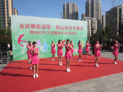 踏着秋天的气息,迈着轻盈的脚步,2013年10月13日上午,龙虎塘中心幼儿园教师参加了龙虎塘街道第一届运动会开幕式活动。 我园为本届运动会开幕式进行了开场秀——《青春炫舞》,大家每个人的脸上洋溢着灿烂的笑容,激情与热情点燃着属于在场每个人的青春之火,运动之光。在这里,每一个龙幼人都尽显美丽,在这里,每一个龙幼人都神采奕奕。这不仅彰显了龙幼教师们的意气风发的精神风貌,更展现了龙幼教师们的青春与活力、健康与向上。 我们以精彩的开场秀,预祝所有运动员都能赛出好成绩,预祝龙虎塘街道第一届运动会取得圆满成功!