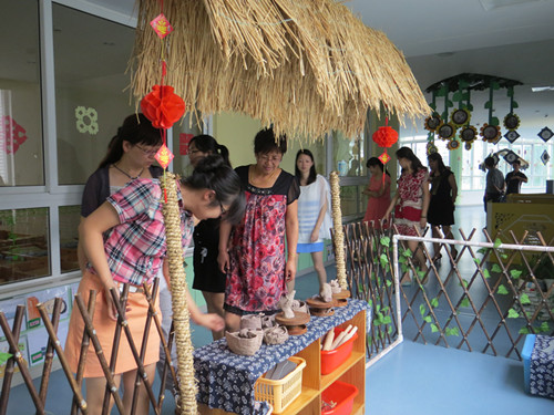 9月13日下午,由龙虎塘实验小学各年级班主任所组成的观摩团,来到龙虎塘中心幼儿园进行校园、班级文化建设参观交流活动,龙幼领导、教师和孩子们对“邻居”的到来致以最热烈的欢迎与问候。 观摩团成员在高亚媛园长和赵小芳副园长的陪同下,参观了我园的大厅、文化墙、区域连廊及专用活动室等园所环境。教导处宋一叶主任向来宾详细介绍了我园校园文化的内涵和基本情况。整洁优美的校园环境、主题鲜明的文化长廊、各具特色的班级文化,独具匠心的专用活动室文化……无一不吸引了他们驻足观看。观摩团的老师们边看边拍,个个啧啧称赞,对我园丰富的校园文化建设及老师们的用心付出赞叹不已。 园所文化是幼儿园全体成员凝聚在一起的强大的精神力量,也是幼儿园的品牌形象,它对老师和幼儿产生着潜移默化的陶冶作用。我园在传承、弘扬传统文化的基础上,结合实际,积极创建适合本园健康发展的园所文化,通过近年来的实践,形成了一道独特的龙幼文化风景线。 而我园也将继续践行“润泽生命,倾听花开”的办园理念,抓住机遇创特色,聚精会神谋发展,在园所文化建设的道路上实现新跨越! |
