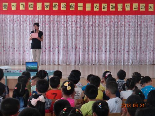在毕业典礼上,孩子们表演了精彩的节目,充分展示了自己在幼儿园的快乐生活和突出的才艺,赢得了小朋友和家长的热烈掌声。在优美的舞蹈《我爱你》中,大班小朋友人生中的第一个毕业典礼拉开了序幕;在孩子们毕业诗的朗诵声中,孩子们回忆着在幼儿园成长的点点滴滴;小帅哥们表演的《江南stytle》动感十足,活力四射;环保服装秀中,一个个小模特身着用纸箱做成的服装,明星范十足,各自展示着环保理念带来的活力和生机;体操社团带来的《白龙马》,让孩子们感受到了幼儿体操的魅力所在……孩子们可爱的模样,微笑的表情,专注的表演,洋溢着孩子的童真、活力与希望,让老师与家长看到了他们身上闪发着的最耀眼的光芒,如初升的太阳般夺目生辉。