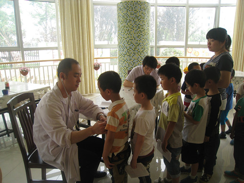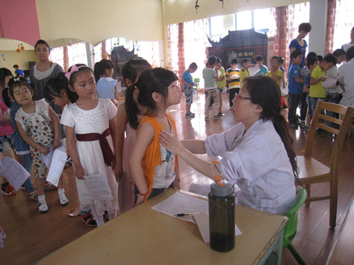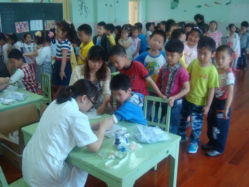 ——龙虎塘中心幼儿园“六一体检”纪实 为进一步加强幼儿保健管理,及时掌握幼儿营养状况和体格发育情况,近日,龙虎社区卫生院一行医务人员来到龙虎塘中心幼儿园,为三园区幼儿进行一年一度的“六一体检”,这也是送给孩子们的一份特殊的六一“节日礼物”。 一大早,医生们携带了各种体检器械来到了幼儿园,保健老师和各班教师一同协助医生为幼儿进行检查。小朋友们在老师的统一组织下,有秩序地排好队伍,每人手里拿着自己的体检表,一个接一个有序地进入体检室。先是全身检查,然后是血色素检查,最后进行了氟离子防龋。医务人员耐心、细致地为每一位小朋友进行着各项检查,并认真做好记录,整个过程秩序井然。 关注儿童健康,是幼儿园全体老师、家长们最关心的事。“六一”健康体检有助于家长和幼儿园及时了解儿童的营养状况及体格发育情况,受到大家的欢迎和支持。祝愿所有的龙虎娃们,在各方的关注下,能更加健康、茁壮地成长! |