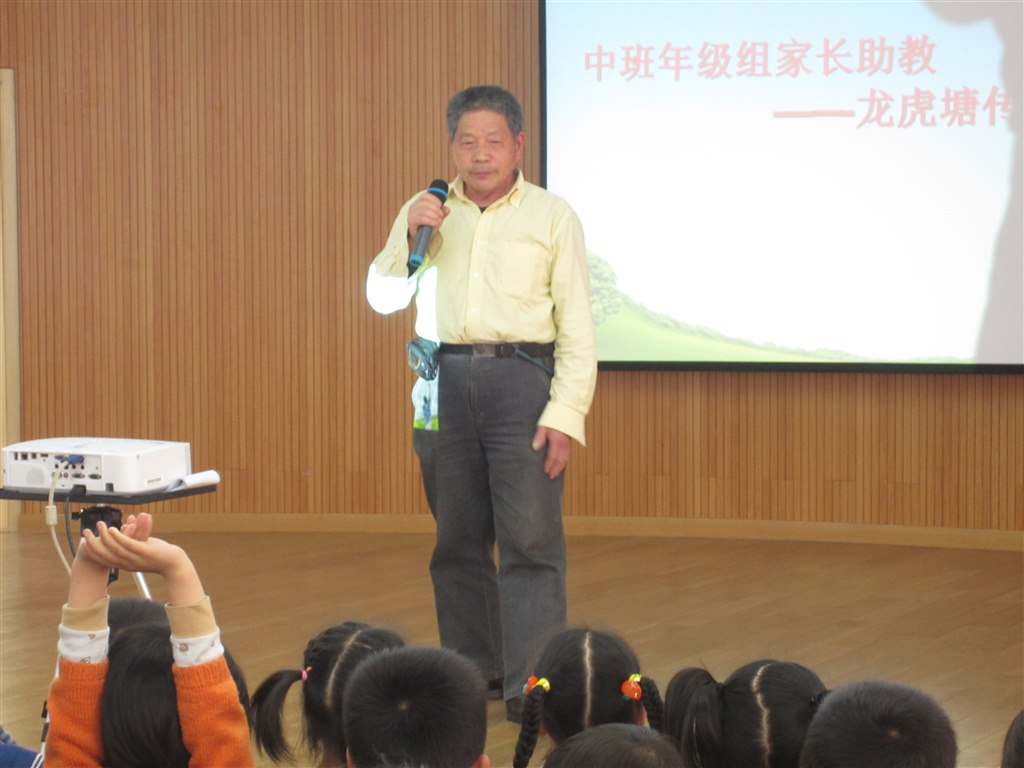 随着主题活动《我爱龙虎塘》的逐步开展,孩子们深切感受到了龙虎塘翻天覆地的变化,都为家乡的发展感到骄傲自豪。为了让孩子们对龙虎塘的了解更加深入具体,龙幼中班年级组以“家长助教”的形式,挖掘家长的潜力、拓展孩子学习的渠道,让孩子们接受多元的学习内容。 5月3日下午,在孩子们热切期盼的目光中,爷爷奶奶们走进了校园,为孩子们讲起了龙虎塘的由来:朱鑫柯奶奶讲述了“方圆芦苇连片,秋冬芦花飘飞”——芦花荡演变成龙虎塘的传说;马子杰爷爷则生动地描述了龙虎塘“龙虎相斗”而得名的故事……一个个有趣的传说,深深地吸引着孩子,孩子们时而聚精会神地倾听、时而举起高高的小手询问,思绪不停地随着爷爷奶奶们的话语在蔓延,直至活动结束时还意犹未尽…… 孩子们在故事中遥想着龙虎塘的过去,生活在当今富饶美丽的龙虎塘,相信通过此次活动,他们会更爱自己的家乡。而家长参与具体教学活动的设计与实施,为家园合作开辟了新的途径,也使幼儿教育内容变得更为多元,相信孩子们在家园教育的合力下,定会茁壮、健康地成长! |