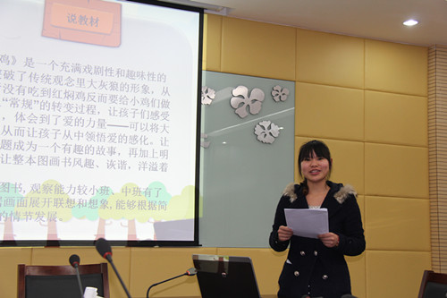——记龙虎塘中心幼儿园2-3年教师说课活动 为促进青年教师主动、持续、和谐发展,引导、激励青年教师立足教学,不断提升专业素养和教学品质,3月22日,龙虎塘中心幼儿园开展了青年教师说课比赛活动。 本次活动采用自主报名的形式,共11位2-3年青年教师积极参与其中。参赛老师精心准备,各显其能,说课中,每位参赛者都表现出了良好的竞技状态,以饱满的精神、高昂的士气,从教材分析、目标定位、活动重难点、教法(学法)、活动流程、活动延伸等几个方面进行了深入的阐述。参赛老师或沉着冷静、或自然大方、或不拘一格的说课形式,充分展示了各自扎实的教学基本功和较强的临场应变能力。但在说课过程中也发现了青年教师普遍存在的一些问题,如:有的目标定位准确性缺乏;教法与学法运用不够恰当等等。 最后,教科室季雪芬主任充分肯定了青年教师的高昂的热情、认真的态度与说课的质量,同时也针对教师们在说课中存在的问题提出了宝贵的意见,让青年教师们更加明确“说什么”以及“怎么说”。在这春暖花开的季节,老师们通过说课平台,教学相长,互助提升,品味着说课的魅力,享受着参与的快乐!