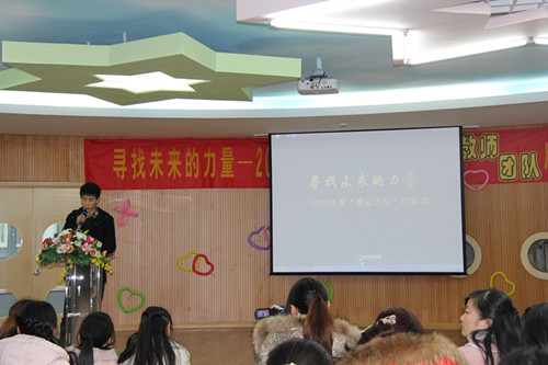 2013年1月18日,隆冬时节,窗外寒意阵阵,可是龙幼玲珑园区的音体室里,却暖意融融,龙幼所有的保教人员汇聚一室,以年级组和学科组为单位,进行着一场感动龙幼的主题汇报活动,瞧:灯光闪耀的舞台上,每一个龙幼人都在以自己的方式,述说着各自的感动。