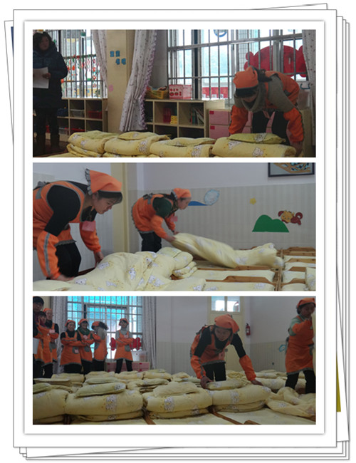 只听计时员的一声令下,大家争分夺秒,条条被子变成了方方正正的“豆腐块”!