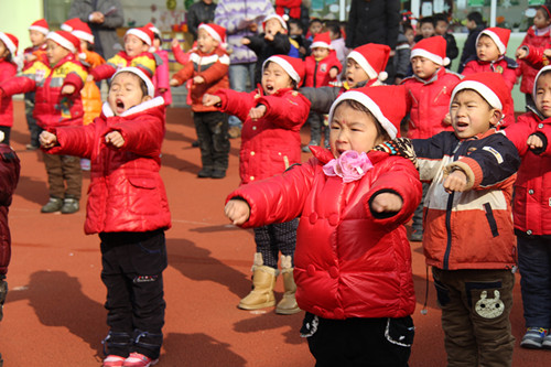 最后,可爱的小班宝宝们也来展示他们的风采,别看他们年龄小,但是在教师的带领下,伴随着好听的音乐,他们一会儿甩甩手,一会跺跺脚,一会儿摇摇头,充满激情,可爱至极! 孩子们专注的神情、富有童趣的表演,老师们充满动感、热情的带动,感染了在场参加评分的每一位领导、老师和家长。评委们秉着公平公正的态度,根据评分标准从精神面貌、服装、动作、队列等多方面给出了客观的评价。“活力四射”奖、“最佳创意”奖……别具一格的奖项设置是对孩子们今天精彩表现的最佳肯定! 这次早操律动比赛不仅激发了幼儿积极参加体育锻炼的兴趣,发展了幼儿的动作协调能力,也培养了孩子的竞争意识和团队精神,幼儿的集体荣誉感得到了进一步升华,同时还展示了教师和幼儿积极向上的精神风貌。在这欢乐的圣诞节之际,我们共同见证了龙幼这场活力四射,精彩无限的幼儿早操比赛,相信我们的运动热情会燃烧整个冬季!