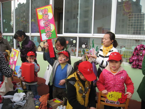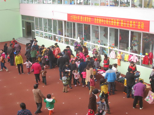 ——记龙虎塘中心幼儿园(腾龙园区)首届爱心义卖节 随着前期爱心义卖活动的开幕、宣传、捐献物品等各项准备活动紧锣密鼓地展开,11月27日,龙虎塘中心幼儿园首届爱心义卖活动在孩子和家长们的翘首盼望中如期开展啦! 你瞧:老师们把孩子们捐献的物品,分类摆成了六个摊位:有书籍类、毛绒玩具类、鞋服类、手工制作类、塑料玩具类,伴随着义卖活动音乐的响起,偌大的操场瞬间人头攒动,热闹非凡,孩子们被各种心爱的物品吸引着,“这是我捐的,那也是我捐的……”看着自己的物品被其他小朋友买走,孩子们的心中乐开了花。此时,温暖在手心传递,感动在心底流淌!