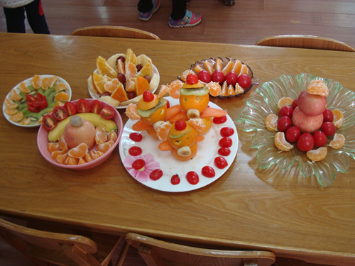 腾龙月亮一班的爸爸妈妈们正在制作自己的水果拼盘呢!