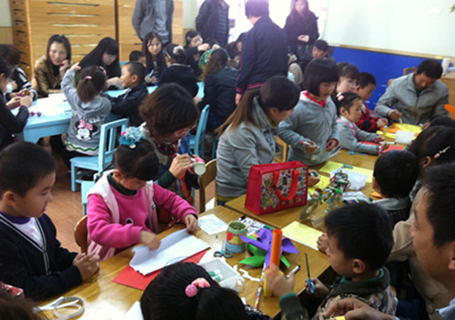 腾龙月亮二班的爸爸妈妈们正在制作自己的小作品呢!