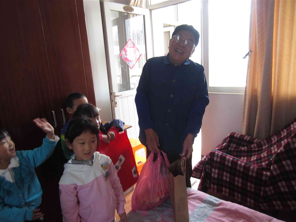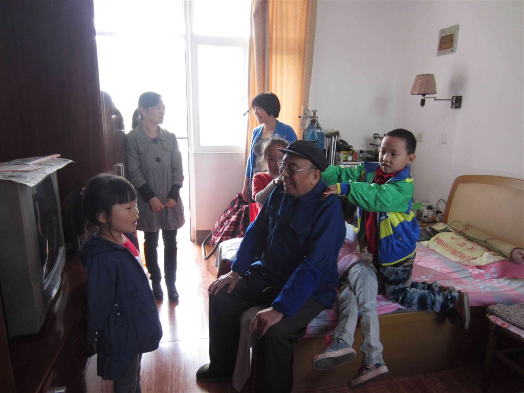 丹桂飘香,金菊绽放,值此九九重阳之际,为进一步增强师生尊老、敬老、爱老、助老、养老的道德意识,营造温馨、和谐、健康、文明的校园氛围,10月23日上午,龙虎塘中心幼儿园团支部组织了3名青年志愿者和5名幼儿来到新北区天禄敬老院,为孤寡老人送去了节日问候和祝福。 走进敬老院的大门,孩子们非常亲切地与爷爷奶奶们打招呼,送上了节日的祝福。看到活泼可爱的孩子,老人们的脸上露出了欣慰的笑容。大家围坐在老人们身边,陪他们唱歌、讲故事、聊天。大院内里时不时的传来欢声笑语,老人们纷纷表示年轻人的到来给他们平淡的生活带来了生机与活力,他们很愿意和孩子在一起欢度重阳佳节。 活动中,志愿者和孩子们还特地为我园退休门卫师傅王爷爷送上了节日的祝福,他们详细询问了王爷爷的健康状况和日常生活情况,并送去了丰富的慰问品。孩子们还为王爷爷即兴表演了丰富多彩的文艺节目。节目表演完后,孩子们赶紧请王爷爷坐下,并为他敲背、按摩……让王爷爷感受到了龙幼人的温情。