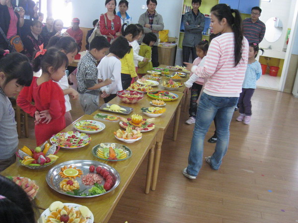 龙幼:家园携手共创和谐教育 —— 记龙虎塘幼儿园腾龙园区大班家长开放活动 2012年10月17日上午,龙虎塘中心幼儿园腾龙园区开展了一次别开生面的家长开放活动.在本次活动中,孩子们用快乐感染了家长们的心灵,老师们用智慧助燃了每位孩子的灵感,家长们用热诚和微笑给予了本次活动最好的评价! 本次家长开放活动经过老师们的精心安排,进行得有条不紊。教学活动、早操、区域游戏、以及亲子制作活动一环紧扣一环。其中情感丰富的语言活动《母鸡和苹果树》,条理清晰的数学活动《根据特征分类并作记录》都给各位家长留下了深刻的印象,孩子们出色的表现也不禁让家长们啧啧称叹!