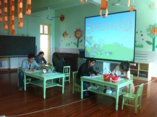 为了更好地落实《幼儿园教育指导纲要》精神,不断提高教师的业务能力,鼓励青年教师加强教学基本功的练习,全面提高教师的自身综合素质, 10月11日中午 ,龙虎塘中心幼儿园大班年级组教师分园区举行了教师绘画比赛活动。 这次绘画的内容是以传统游戏为主题,时间1小时,老师们经过精心的准备,画出了各种传统游戏的画面,让人眼前一亮,有跳大绳,跳房子,踢毽子,丢手绢等等,这些儿童画,画面清晰,主题明确,用色鲜艳,夸张,充满童趣! 本次比赛活动为幼儿园教师们搭建了自我展示、相互交流、相互学习的平台,促进了教师素质的提高,为教师的专业成长奠定了良好的基础,同时也为提供规范、优质、高效的服务打下了坚实的基础。