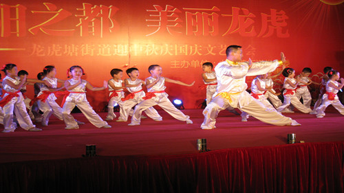 ——龙虎塘街道迎中秋庆国庆文艺晚会之幼儿武术操表演《中华小子》 为庆祝中秋节、国庆节的双节来临,歌颂党和祖国建设的美好风貌,表达龙虎塘对人民群众的美好祝福, 本次武术操表演共有22名大班幼儿参加。为了能在晚会上一展身手,近一个月以来,他们每天下午坚持刻苦训练,在 本次活动让幼儿从小了解了中华武术的博大精深,培养了幼儿坚韧不拔,不怕吃苦的武术精神。相信龙幼全体师生定会秉承中华精神,更完美地展现龙幼人的别样风采! |
