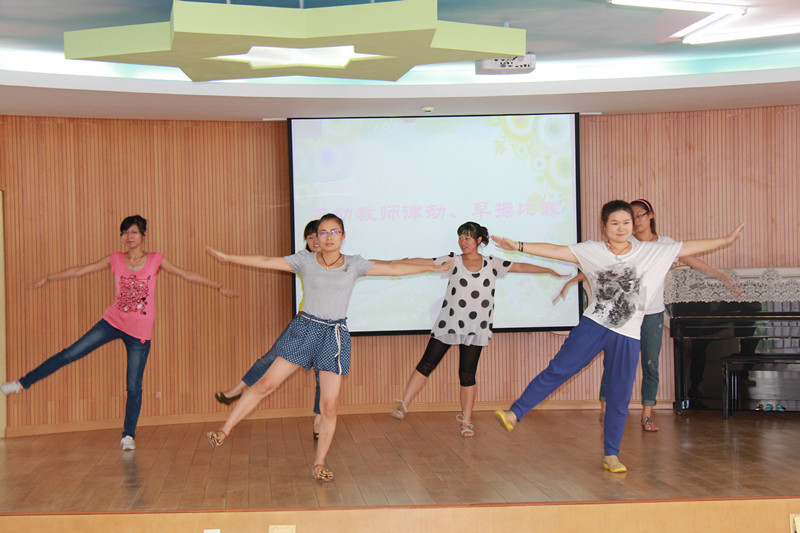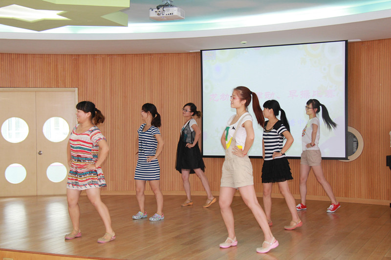 操节、律动是幼儿园一日生活中的重要环节,它既能锻炼幼儿身体,又能激发幼儿的积极情绪,为下一步的智力活动做好准备。为了提高我园晨间律动及早操的质量,三园区各年级组的老师们在假期里就精心选择音乐,并根据各年龄段幼儿的年龄特点编排好了动作。