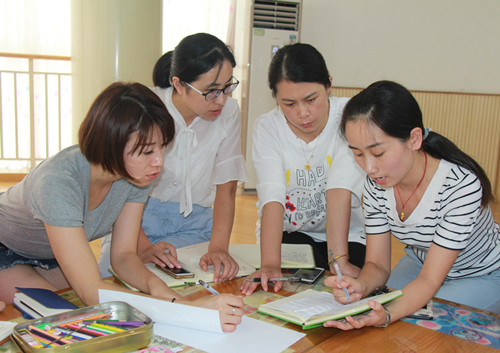 为了进一步加强我园课程建设,深入推进课程游戏化实施,助力教师专业成长,使教研活动更具针对性、实效性,2018年9月17日,龙虎塘街道中心幼儿园开展了主题为“走进生成课程,走近儿童世界”的园本培训活动。 本次活动由张静主任主持。活动前期,主持人将所有教师分成6组,组成不同的学习共同体:经验丰富的成熟型教师、中坚力量的发展型教师、有力求上进的年轻教师……大家前期查阅资料,积极准备。 活动现场,各组成员围绕“生成课程从哪里来?如何进行价值判断?课程推进要从哪几个维度来架构?”等话题展开研讨交流。大家积极阐述自己对生成课程的理解,分享了在开展活动的过程中,孩子们带给老师的惊喜,以及在活动中的感悟和反思。 根据老师们的发言,宋一叶主任边听边抓取关键词进行记录。最后结合主题,给老师们指点明津,明晰“生成课程”的概念,既有理论的引领又有案例的剖析。通过宋主任的精彩讲解,老师们更加明晰了生成课程的内涵,以及教师在生成活动中的角色定位。 深入地学习,为幼儿的参与、为课程的发展,为那些不期而至的教育契机留下了足够的空间。今后,我们将努力使课程寓于过程之中,寓于生成之中,寓于师幼的互动之中,努力迈向属于龙幼,属于孩子们自己的课程。 撰稿:张忧 摄影:张忧 审核:潘雯雯