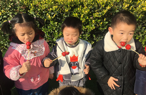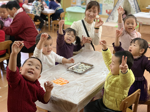 伴随着冬日里温暖的阳光,满怀着喜悦的心情,2019年元旦如约而至。为了让幼儿更好的了解我国传统文化节日,加深对元旦的认识和了解,体验元旦的喜庆气氛,2018年12月29日,龙虎塘街道中心幼儿园腾龙小班开展了丰富多彩的乐享元旦活动! 篇章一:亲子游戏 龙娃乐翻天 为了让孩子们充分体验在幼儿园这个大家庭中一起迎接新年的喜悦,星星1班开展了亲子游戏《龙娃乐翻天》活动。“爱的抱抱”、“抢占地盘”、“争分夺秒”、“纸杯大战”……一个个温情的游戏,一分分激动人心的时刻。家长们纷纷表示:和孩子共同参与集体活动,增进了亲子之间的情感沟通,愉悦的活动仿佛将自己又带回到天真烂漫的童年时代,繁忙之余收获了一份久违的感动。 篇章二:传统美食 龙娃包馄饨 星星2班开展了亲子包小馄饨活动,让幼儿亲手制作新年的美食,体验新年的快乐。活动特别邀请了家长走进班级和孩子们一起包馄饨,“奶奶,你看我包的怎么样?”“阿姨,这个是我自己包的,待会给你吃哦”……一句句稚嫩的话语,甜甜地流淌进家长的心。当一碗碗热气腾腾的馄饨在大家的期待中被端上了餐桌,孩子们狼吞虎咽地吃着,品尝着自己的劳动成果。 篇章三:家长助教 龙娃搓元宵 星星4班开展的“龙娃搓元宵”家长助教活动中,孩子们在家长志愿者的示范下自己动手做元宵,忙得不亦乐乎:左手捏一捏,右手捏一捏,掌心相对藏起来,跳起圆圈舞,转呀转转呀转,一只只汤圆搓好啦!一双双能干的小手做出了一颗颗甜蜜的元宵。尽管元宵有大有小,有圆有方,但孩子们倍儿有成就感。他们在提高动手操作能力的同时,体验着成长的快乐。 篇章四: 冬日味道 DIY糖葫芦 星星3班全体幼儿开展了"品冬日味道,DIY糖葫芦 "庆元旦活动。糖葫芦需要有哪些食材?需要用什么东西去串?制作糖葫芦有几个步骤?经过老师们的耐心讲解与示范,孩子们开始分工合作,有的负责串串,有的负责熬冰糖……不一会儿,一串串晶莹剔透、鲜艳诱人的冰糖葫芦新鲜出炉啦!甜甜脆脆的糖衣合着多汁美味的水果,酸酸甜甜的味道让宝贝们满足得连眼睛都眯起来了…… 元旦是中华民族的传统节日,是新的一年的开端,举国上下,喜气洋洋,欢度元旦。腾龙小班年级组通过系列迎新活动,让孩子们充分感受到中国年的喜庆氛围,在亲子体验中感受到中国传统“年”文化,体验了喜迎新年的快乐。 撰稿:张忧 摄影:各班教师 审核:潘雯雯