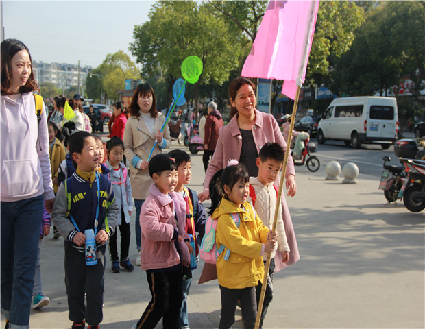 高铁生态公园位于腾龙园区南侧1.2公里,园内草长莺飞、花红柳绿,到处一片生机勃勃的景象,是一个自然资源丰富的生态公园。为了让孩子亲近自然、感受春游的乐趣,3月31日上午,龙虎塘街道中心幼儿园腾龙园区月亮3班开展了“我们去春游”社会实践活动。 篇章一:我的春游我做主 活动前,月亮3班开展了绘本课程《14只老鼠去春游》,幼儿对春游很是向往。于是,教师深度挖掘高铁公园中的课程资源,以满足孩子当下的兴趣点和探究点。在教师提前踩点的基础上,幼儿结合自己的生活经验,展开全面讨论:春游路线、安全自护、小组分工等,并初步制定春游计划,积极筹备一个属于自己的春游。 篇章二:徒步远足我能行 终于,孩子们迎来了期待已久的春游。在教师精心策划、家长护卫队协助配合的安全保障下,孩子们犹如快乐的小鸟,欢呼雀跃地出发啦!在老师的引导下,他们认识了许多路旁标志,对周边环境也有了更多的了解。1.2公里的路程对于中班幼儿来说是个不小的挑战,但是孩子们都能坚持到底,做一个文明出行的小朋友。 篇章三:相约春天我快乐 经过30分钟的徒步行走,孩子们到达了目的地——高铁生态公园。一进入公园,孩子们就感受到春天的气息:成簇的迎春花、成片的垂丝海棠、张开“翅膀”的蝴蝶花,还有偶然一见的蒲公英,满满的“春风花草香”。还有那让孩子们感兴趣的小动物们,飞舞在花丛中的小蜜蜂,小水池里的成群蝌蚪,无不诉说着春天的到来。孩子们纷纷拿起手中的画笔将自己看到的、听到的、闻到的、喜欢的、一切所能感知到的记录在了纸上。孩子们笑着、跳着,掩饰不住激动与喜悦,沉浸在和同伴游玩带来的欢乐中。 春游,让孩子们走进大自然,拥抱大自然!和灿烂的阳光打招呼,和小草做朋友,高铁公园内,到处都留下了欢乐的足迹。本次活动紧抓课程资源,充实和丰富了幼儿园课程内容,进一步促进了幼儿对自然知识的探究和观察兴趣。 撰稿:戴洁 摄影:陈婵洁 审核:潘雯雯