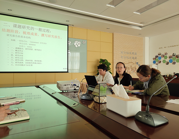 课题研究是教师科研能力提升及专业发展的重要途径,为促进一线教师有目标,有方向地参与课题,2019年4月19日,龙虎塘街道中心幼儿园课程研训中心全体教科研条线负责人和12名课题申报主持人相聚玲珑二楼会议室,进行了微型课题的开题论证。 课题招标有计划 前期,课程研训中心面向全体教师进行了课题招标,围绕学校重点工作及实践问题对微型课题的申报方向和范围给予了一些建议,让教师们更有针对性地进行课题的申报和思考。教师们基于班本需求、实践困惑等因素,招募志同道合的小伙伴,初步确定研究的方向及目标和内容。在准备过程中,教师们的科研视角更加广阔,捕捉问题及价值判断的意识和能力更加敏锐。 课题论证有思考 论证期间,12位申报主持人结合“互动式家长”、“科学区”、“户外运动”等切入点,进行课题名称、目标和内容阐述。随后,王惠副园长、季雪芬主任和张丽主任针对课题内容的可行性及价值性、语句表达的准确性等给予了反馈和建议。通过课题的论证,申报教师对课题研究的方向更加清晰,对其后续的研究也更具信心。 课题推进有方向 最后,季雪芬主任围绕《说说课题研究》对参会的老师们进行了“怎样做微型课题”的小型培训,让老师们对微型课题的研究价值有了进一步的认识与了解,习得了更多研究的方法,对后期的研究也有了更深入的思考。 知己,方知问题所在;改进,方能涅槃重生。深入的论证让教师对微型课题的实施有了进一步的目标与方向,是一种鞭策,更是一种引领。龙幼教师也将在此过程中,通过“微型研究”小口径、深挖井,解决更多实践中的问题,在师幼共同成长的过程中获得更多成长的快乐和幸福感! 撰稿:颜梦迪 摄影:颜梦迪 审核:潘雯雯