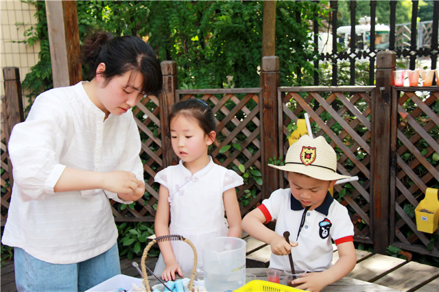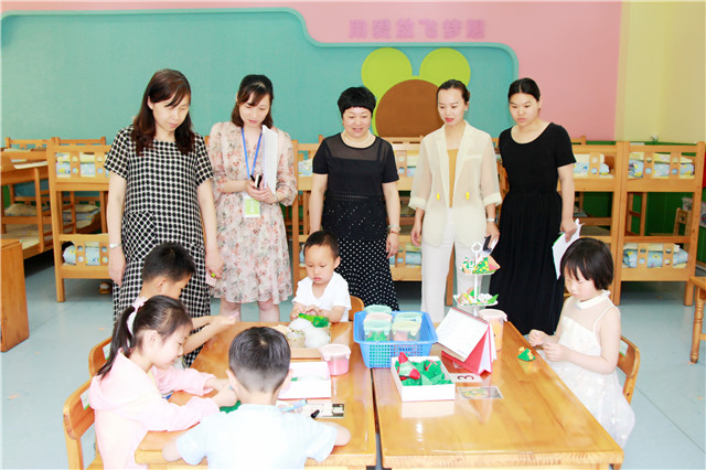 游戏是幼儿的主要工作,创设适宜的游戏环境则能引发幼儿的积极互动,促使他们的持续探究与深度学习,从而助推幼儿游戏水平高质量发展。5月24日下午,龙虎塘街道中心幼儿园游戏研究工作室裹挟三园区空课教师开展了五月份活动,常州市教育科学研究院庄春梅老师也走进学习现场,全程进行了观摩与引领。 经验分享:让观察评析成为幼儿游戏的坚实基础 活动开始之时,蒋晶丹、曹静、宋燕青以及吴玢茹四位教师围绕不同班级环境评估进行了现场汇报。从幼儿参与游戏的数据分析到教室内区域的合理创设,从环境材料的有效支持到教师站位的优化指导,不同的评估报告都折射出汇报教师对于班级环境创设的长程观察与思考,通过环境创设与幼儿游戏之间的关系来反观自身的儿童观、游戏观、课程观,进一步在反思与调整中,为幼儿的学习与发展提供更为适切有效的支持。 游戏开放:让环境材料成为幼儿学习的有力支撑 在乐享节日、嬉夏季以及主题性游戏的多重背景下,在幼儿自主游戏的过程中,基于幼儿的实际需要,不同的环境依托、不同的材料提供让幼儿的游戏更加自由、自主、乐智、乐心。工作室的各个成员以及参与教师纷纷走进游戏现场进行观摩,在观察幼儿的同时也不断进行记录,寻找幼儿成长亮点。在观摩过程中,有趣的水探究游戏、好玩的包粽子、形式多样的自制图书等等游戏活动,让与会老师印象颇深、感受颇多。 专题研讨:让建议反思促进幼儿有效的深度学习 在观摩结束后,教师们分为三个场地就开放的游戏进行了交流研讨。以“游戏环境与材料投放的适宜性,能否对接幼儿当下的经验生长”、“幼儿在游戏中如何体现学习与发展”为主题展开了探讨,提出了更多建议:关注读写区记录桌适宜的高度和位置;材料摆放形式的便利性;自然角资源的最大化利用……智慧碰撞中老师们打开了思路,更加明晰游戏环境应与幼儿当下经验的生长点相匹配,不断助推幼儿学习经验地生长。 专家引领:让有质环境助推幼儿实质的经验成长 活动最后,庄春梅老师为本次活动进行了点评。在肯定了游戏开放班级之后,也为如何打造更加优质的环境提出了建议:如在“嬉夏”的大背景下,与生活相勾连,在乐享端午的背景下投放相应材料,支撑幼儿对节日的理解与游戏;与资源共生发,利用小菜园、自然角等地,开展微课程,让幼儿在亲身感知、实际体验中感受自然的美好;与季节相匹配,寻找夏天中可利用的一切元素,让幼儿在游戏中感受季节的曼妙。 深度学习是依托学习素材,通过记忆理解,感受体验,在游戏中展现自己的独到见解。龙幼人会将“深度学习”化成自己每一天每一个时刻的自觉行为,继续打造有质量、有质感的学习环境,助推幼儿经验的不断生长。