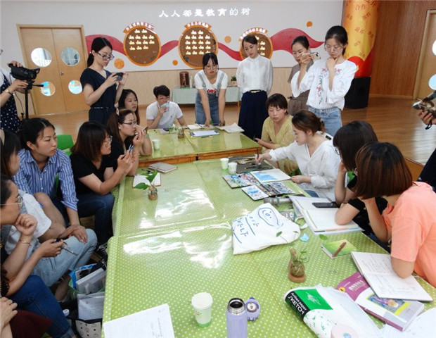 2019年6月26日上午8点半,“金种子”团队的老师们相约齐聚龙虎塘街道中心幼儿园玲珑园区,开展了多元且精彩的技能特训活动。 首先,银河幼儿园钱力老师就《幼儿行为观察》进行了微讲座。她从观察记录比赛中切入,找准幼儿教师在观察记录中的薄弱点,有针对性地进行分析。从观察什么,到怎么观察,钱老师为我们提供了可操作的路径。 其次,吴燕老师以操作与提升相结合的方式进行了“自弹自唱”的特训。分析调性,选择和弦,现场弹唱,对比分析,环环相扣中,老师们巩固了乐理知识的同时提升了对乐曲的感知能力。 接下来,侯姝家老师和教师书法家协会理事张亚明老师以自身多年的经验向我们诠释了“水彩绘画”的意境和“硬笔书法”的美感。论语中提到:“工欲善其事,必先利其器”。好笔、好纸代表着你对专业的理解,好的方法代表着你对专业的运用。作为老师我们需要关注每个细节,重视每个行为背后的意义,这样才能让自身的专业凸显内涵。 在这场实践与知识并重的盛宴当中,老师们像种子一般汲取养分,希望所有参与的老师能不负这场相约,在原有的基础上有所提升,让每个孩子能在你的专业推动下茁壮成长! 撰稿:颜梦迪 摄影:朱宏萍 审核:潘雯雯