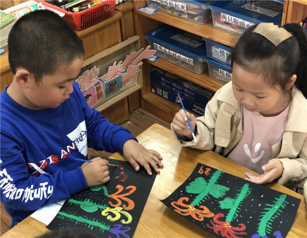 秋天有着非常鲜明的季节特征和可供研究的资源。为让幼儿在多彩的季节中感受秋天的美丽和收获,激发幼儿关注自然、热爱自然的情感,近日,龙虎塘街道中心幼儿园三园区大班年级组围绕主题《我和秋天有个约会》,开展了一系列主题性游戏。 篇章一:自制菊花,彰显秋之美 在这多姿多彩的秋天里,班级自然角的那几盆菊花,总能吸引孩子们的眼球,于是以“菊花”为对象的写生活动由此引发。孩子们在对菊花的形态、颜色观察对比后,并能够将它的特征用自己喜欢的方式呈现出来。不论是水粉画的灵动美、彩铅画的精致美、还是蜡笔刮蜡画的俏皮美,都透露着孩子们对于菊花的喜爱之情。部分班级还卷入多种废旧材料:纸杯、吸管、纸盘等,经过一双双小巧手的加工后,呈现出的一份份菊花手工作品各具风韵,给人以美的感受。 篇章二:玩转秋叶,共享秋之乐 瑟瑟秋风吹落一地黄叶,阳光照耀下别有一番景致,低头仔细一瞧,树叶的种类可真不少。善于捕捉资源的家长们和幼儿一同收集了多种秋叶放置在班级区域中,以供幼儿进一步认识各种树叶的形状、颜色等差异。部分班级以“秋叶”为载体,开展了树叶粘贴画、拓印画、以及树叶书签制作等活动,经过孩子们的剪、贴、粉刷、加工,一片片小树叶转眼就变成了形态各异的小鱼、孔雀、花篮等,彰显了孩子们丰富的想象力。在创作的过程中,孩子们相互合作、相互帮忙,充分体验动手操作的快乐。 篇章三:金秋硕果,共收秋之获 秋天是丰收的季节,各种水果、谷物都成熟了,秋天班级的植物角也一片丰收景象:饱满的麦子、剔透的石榴、茂盛的菌菇……你瞧,秋天就在我们身边。同时,结合霜降节气与生活经验,玲珑大7班的孩子们动手做起柿饼来。在活动开展前,师幼围绕“柿饼的制作方法、需要准备的材料以及注意事项”等方面展开探讨,孩子们在逐步探究与亲手制作的过程中,提高了认知水平,也感受着劳动的辛勤与喜悦。 孩子们走在秋天里,走在游戏的道路上,不断发现生活中的“美”,并能试着去创造“美”,度过了这个富有诗意的美好时光。 撰稿:李宇梦 摄影:三园区教师 审核:潘雯雯 |