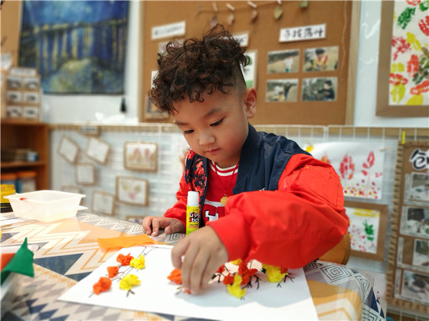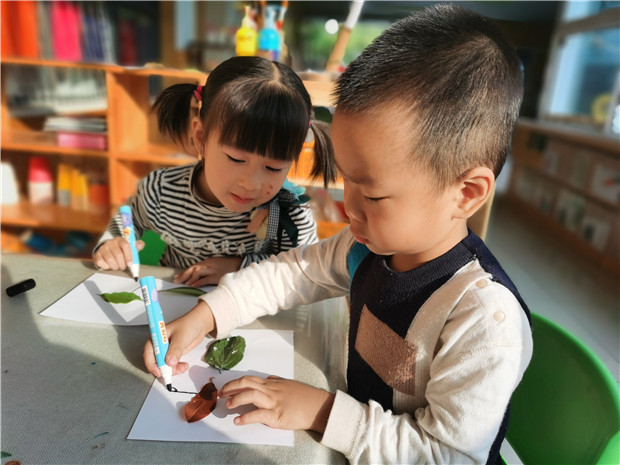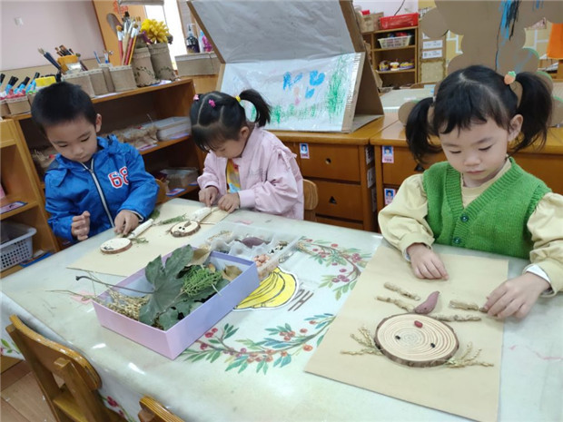 秋天,是一个多彩的季节;秋天,是一个丰收的季节;秋天,是一个气象多变的季节。近日,龙幼四园区小班年级组结合主题《美丽的秋天》,基于幼儿的兴趣和年龄特点,开展了丰富多彩的主题性游戏,让孩子们一起在游戏中感知秋天的特征,领略秋天的美景,寻找捕捉秋天的变化。 篇章一:秋之美——秋天真美丽 秋天是一个绚丽多彩的季节,它有着非常鲜明的季节特征和可供研究的资源。为了让幼儿在多彩的季节中感受秋天的美丽和收获,激发幼儿关注自然、热爱自然的情感,我们给幼儿准备了彩纸、颜料、自然物等多种材料,让幼儿在画一画、贴一贴、印一印中感受秋天的美,享受秋天带给我们的快乐。在孩子们的大胆表现下,一个个造型独特的作品呈现在我们的眼前,大家看着自己的劳动成果,兴奋地尽情鼓掌! 篇章二:秋之乐——玩转秋叶 秋日必不可少的当然是各种各样的秋叶了,秋天的树叶又有什么特点呢?孩子在操场上、小区里收集到了各种形态的叶子,从叶子的形状、颜色、大小等特点进行了解,并在熟悉各种树叶的基础上进行了树叶粘贴画、树叶拓印画的制作。他们一会儿剪、一会儿贴、一会儿画……在孩子们的手中,一片片形态各异的小树叶变成了小鸟、小鱼、孔雀、花篮等等。在制作的过程中,孩子们相互合作、相互帮忙、相互分享,忙得不亦乐乎。 篇章三:秋之获——蔬菜水果大作战 秋天是一个收获的季节,蔬菜水果都成熟了。看,有的小朋友利用超轻彩泥、缓冲气泡膜、彩纸等材料做成可爱的水果宝宝贴在树上,顿时秋天的果园就“长”出各种水果了;有的小朋友利用玉米、山芋、花生等谷物组合在一起,画上眼睛嘴巴一个可爱的小人做好了;还有的小朋友把蔬菜榨成汁,混合在面粉里做成蔬菜面条,好看、好吃又有营养……孩子们享受着游戏的乐趣,体验着丰收的喜悦。秋天,就是离我们这么近。 走在秋天里,走在游戏的道路上。我们体验着快乐,分享着喜悦,感受着不一样的美。 (撰稿:汪曙 摄影:各班教师 审核:潘雯雯) |