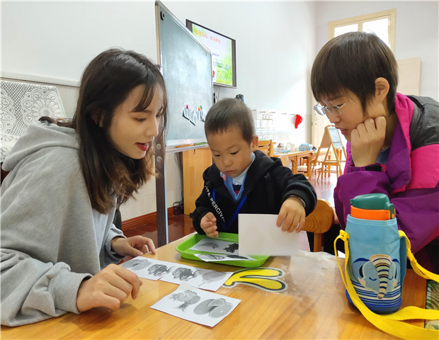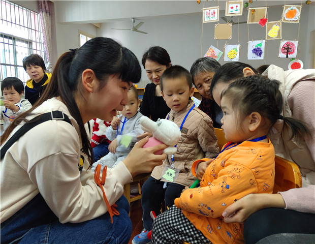 11月23日上午,龙虎塘街道中心幼儿园龙贝贝早教中心在街道计生办的大力支持下开展了第四次早教活动。本次活动迎来了社区的十对宝宝和爸爸妈妈们,大家齐聚盘龙星星三班教室开始了丰富多彩的亲子游戏。 初到幼儿园,小朋友们虽然有些陌生,但也带着自己的小激动。首先,由倩倩老师带着小朋友们在“亲亲热热:找朋友”的游戏中大胆地介绍自己,愉快地与新朋友进行互动,拉近彼此距离。随后,媛媛老师带来了一个好玩的游戏,名字叫“做做玩玩:水果接龙”。小朋友们不仅要说出自己看到的水果,还要认真倾听游戏规则进行游戏,锻炼了大家的表达能力和专注能力。在第三个游戏“蹦蹦跳跳:动一动”中,宝贝和爸爸妈妈们通过简单的儿歌,有节奏地进行身体运动。点点头,扭扭腰,小手小脚打招呼,生动形象的动作让小朋友们感受到了律动带来快乐。在“涂涂画画:熊猫吹泡泡”中,小朋友们利用瓶罐进行印画,变出了大大小小的泡泡,十分神奇。憨态可掬的熊猫,到处飞扬的泡泡,激发了幼儿对美术创作的兴趣。最后,小朋友和爸爸妈妈们一起走到户外玩起“吹泡泡”的游戏,在变大变小转圈圈的过程中,促进亲子互动,增进亲子感情。 早期教育是为了给予孩子们科学健康的成长环境,通过精心组织的活动、科学的指导,来促进宝宝身心健康成长。希望通过本次活动能让社区0—3岁宝宝接受到更多的早期教育服务,帮助社区家庭提升育儿理念,普及并提高家长科学育儿的知识和能力。 撰稿:颜梦迪 摄影:颜梦迪 审核:潘雯雯