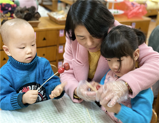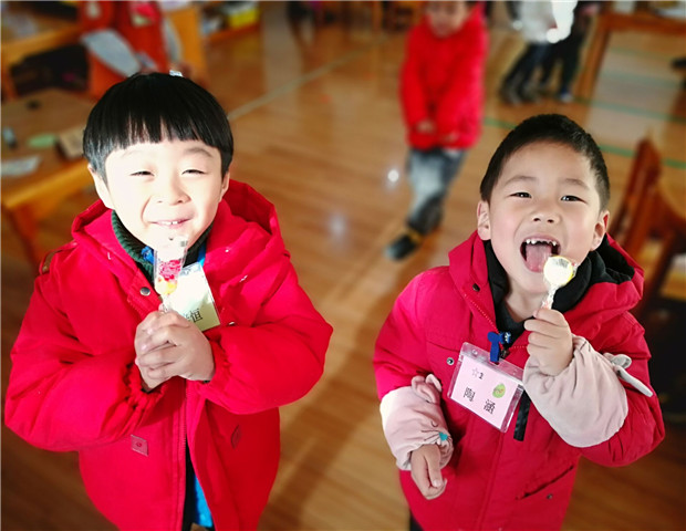 光阴荏苒,金猪悄然而去,玉鼠踏歌而来。不经意间,时光的年轮又多划了一个圈。我们伴随着冬日的暖阳,满怀喜悦迎接即将来临的2020年。为了让小班幼儿感受浓浓的年味,度过一个欢乐而有意义的迎新活动,12月31日,龙虎塘街道中心幼儿园小班年级组展开了一系列“乐享元旦”节日课程活动。让我们走进现场去看一看吧! 鼠于你——张灯结彩 盘龙园区中班的哥哥姐姐走进了小班,大家互赠礼物,其乐融融。“谢谢姐姐送我的窗花,我好喜欢呀!”“谢谢哥哥教我做红包,今天可真开心!”“不客气!我们一起跨年啦!”在这样的跨年级组庆祝活动中,每一个孩子都得到了情感的满足。除此之外,妈妈故事团之送福啦、制作元旦贺卡赠送家人、新年联欢会及新年走秀等活动,每一个活动都让幼儿体验到幼儿园大家庭的友爱,又发扬了中华民族传统节日的教育价值,真是一举多得! 鼠于你——甜甜蜜蜜 “都说冰糖葫芦儿酸,酸里面它裹着甜。都说冰糖葫芦儿甜,可甜里面它透着那酸……”《冰糖葫芦》勾起了多少人的童年记忆,又让多少人留恋它的酸甜。 为了让宝贝们品尝到纯天然无添加的冰糖葫芦,也为了锻炼孩子们的动手能力,亲眼见证冰糖葫芦的制作过程,腾龙园区妈妈门走进班级助教,和孩子们共同制作了美味的冰糖葫芦。瞧,甜甜的山楂、香香的水果,裹上一层冰糖,让人垂涎欲滴,祝大家每一天都能甜甜蜜蜜! 鼠于你——祝福满满 天气虽然寒冷,但玲珑园区的各个角落都张灯结彩,到处洋溢着家的温暖。可爱的小老鼠吉祥物,红红的中国结、对联、福袋、灯笼,所有的一切都充满着新年的喜悦。孩子们还自制了创意鞭炮、扎染花布、彩泥汤圆等,在动手、动脑的过程中寻找年味儿。最后,孩子们一起在新年树上挂满新年心愿,希望每个人的新年愿望都能实现! 鼠于你——创意无限 为了促进良好亲子关系的养成,盘龙新园区开展了“快乐打卡,鼠你精彩”的亲子打卡游戏。活动前,老师和孩子们充分挖掘场地资源,将多功能厅、专用活动室、户外场地布置成各大新年游戏场馆,让家长和孩子们在各场馆打卡游戏的过程中,体验新年带来的快乐。活动中孩子和爸爸妈妈共同选择打卡路线,大家根据不同的打卡路线穿梭在各个场馆中。你听,模拟球场中传来阵阵加油声;森林图书馆3D影院的《猫和老鼠》吸引了很多小朋友;科探室中神奇的“飞上外太空”让大家惊叹连连……阵阵欢笑声飘扬在整个幼儿园上空。欢乐的时光是有限的,留下的回忆是无限的,最后大家拿出精心准备的红包赠送给小伙伴们,红包里满载着小朋友和爸爸妈妈一起写的新年祝福。回到教室后,孩子们还饶有兴致地讨论着今天的元旦庆祝活动,这正是我们开展本次活动的意义与价值所在。 2020我们继续一路同行,所谓“新的一年”,不过是在故事的结尾写下另一个的开始,生活往前,故事继续,让我们一起边走边写,写下孩子与龙幼的绚丽篇章!