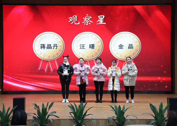 时光匆匆,岁月悠悠,四季交替,万物更迭。岁月那么清,那么静,那么暖,然而遇见,那么美。1月16日,龙虎塘街道中心幼儿园全体教职工齐聚玲珑二楼音体室。大家跟随时光的脚步,一起走进12月和1月的盘点…… 工作盘点:共享昔日芳华 回望忙碌崭新的一月,细数着龙幼成长道路上的每个瞬间,让我们更坚定前行的脚步。本次的月盘点工作由季雪芬主任主持,她分别从“园所管理篇,看有声有色的龙幼”、“教师成长篇,促有思有行的成长”、“课程建设篇,过有滋有味的日子”、“后勤保障篇,见有条有理的精致”四大版块,带领龙幼人回顾了我们走过的每一步。每月的盘点工作犹如一团火苗,助燃着龙幼人的热情,让每一位龙幼人都在生机勃发,聚力前行。 最美巡礼:共赏身边典范 沉醉于美妙的冬日恋歌,龙幼的每个人不畏寒冬,尽放光彩。令人期待的最美员工巡礼,在宋一叶主任的主持下渐渐拉开了序幕:其中有暖冬季精彩绽放的课程星,有选材广阔解读生动的博客星;有勤劳肯干的保育员团队……最后,学校还宣布了本年度通过绿色通道晋级“街道先进个人”的7位优秀教师,颁发了各级比赛获奖证书。他们是龙幼最美的员工,他们用实际行动告诉我们,只要脚踏实地,不断锤炼,总会有闪光的地方! 光荣退休:共睹温馨时刻 退休往往意味着职业生涯的结束,在平凡的岗位把一件事情做好也是不平凡的。曹仁娟老师入园二十多年来,在每一个工作岗位上,总能尽心尽责,每天都带着阳光般的心态把快乐传递给每一个人。在退休之际,领导及同事都对她充满了感谢与祝福。用心制作的视频、光荣退休的牌匾、美丽的鲜花,都是对退休人员的美好祝福,希望在以后的生活中,曹老师的每一天都多姿多彩,幸福满满。 一次回眸为成长助长底气,一次展示为未来描绘美好,一次巡礼为前行增加动力。2020,我们将继续以成长为核心、 走进课程、靠近幼儿, 回归本源,植根创生,让情怀落地,让美好发生,遇见更好的自己。 摄影:张悠 撰稿:张悠 审核:潘雯雯