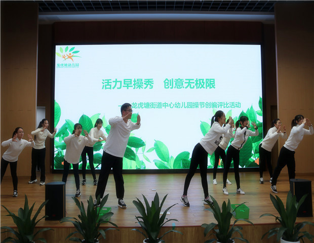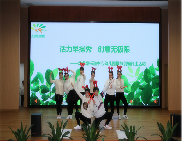 操节活动是幼儿园一日活动中的重要组成部分,为进一步优化幼儿操节,激发幼儿参加户外活动的兴趣,增强幼儿体质,1月16日上午,龙虎塘街道中心幼儿园全体教师齐聚玲珑园区音体室,开展了操节创编评比活动。 活动开展前,课程研训中心提供统一音乐,各年级组教师根据不同年龄段幼儿的学习方式和年龄特点在早操编排上大胆创新,让幼儿操节情境化、游戏化,同时将幼儿走、跑、跳基本动作与操节、舞蹈、律动、音乐游戏等融合在一起,使整个早操洋溢着童趣。为在活动现场展示最佳状态,教师们做足准备,充分利用空余时间集中练习,努力做到动作规范、整齐。 活动中教师们以级组为单位穿上统一服装、化上统一妆容,个个精神饱满、动作整齐、表情自然、具有感染力,将蕴含着智慧和富有童趣的律动操生动地展现了出来。优美的身姿和动听的音乐尽显幼儿教师的青春活力和积极向上的精神面貌。一组组精彩的操节将整个比赛推向高潮,教师们用肢体语言演绎了她们对音乐的理解。 此次操节创编评比活动从音乐的选择到动作的情境性创编充分体现了龙幼“润泽生命、倾听花开”的办园理念。活动既发挥了个人特长,又凝聚了集体的智慧,大家在活动中跳出了创意、跳出了自信。相信这份给孩子们准备的新年第一份大礼,定会给孩子们带来惊喜和健康。 撰稿:万丽娜 摄影:万丽娜 审核:潘雯雯