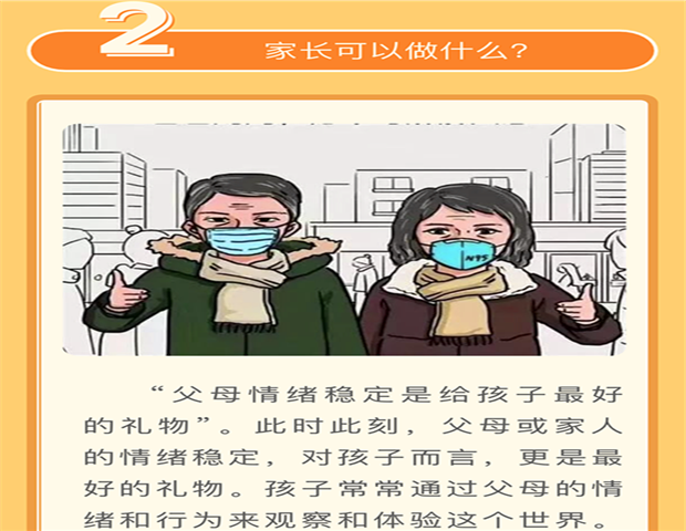 2020年,一个突如其来的“坏人”扰乱了我们热闹的春节,它就是新型冠状病毒。随着商场关闭、居家隔离等一项项措施的颁布,家长们是否感到焦虑?孩子们是否感到无措?“家庭”作为国家的小单位,我们也面临着隐形的疫情抗争。为更科学的面对疫情,龙幼微信公众号连续四次推送《龙娃宅家课程之防疫心理课程》,希望能帮助每一个家庭化解心理恐慌,做好心理建设,提供心理支持。 首先,精选心理小知识。从什么是病毒,到病毒来了怎么办?我们通过图片、比喻等方式,希望让孩子们正确认识了解新型冠状病毒,不忽视、不恐慌。其中对于突发事件带来的心理压力,我们也给予了家长朋友们合理安排生活作息的建议和关注幼儿内心需求的方法。 其次,推送趣味小游戏。在每一期内容中,我们推荐了一些材料简易、操作简单的小游戏给大家。在米盒捉迷藏中,幼儿可以通过感知培养专注力;在家中寻宝时,孩子可以通过探索提升生活幸福感;在捉逃小蜻蜓中,宝贝可以通过互动锻炼了快速反应力……相信这些小游戏的推荐,会让爸爸妈妈们更加科学地陪伴幼儿度过这段“宅”家时光! 最后,保健老师来支招。四园区的保健老师们也通过录音的方式,为小朋友们、大朋友们送出了“心理防护口罩”:照顾好自己,保持健康的身体和健康的心态是抵御疾病的重要武器;合理宣泄负面情绪,做一做喜欢的事如:运动、画画、照顾植物等都是不错的方法;做一个积极、淡定的家长,敏感的孩子能从家长的情绪中感知事物,希望家长能通过自身的语言或情绪给予孩子正能量……亲切的口吻,暖心的陪伴,希望能帮助大家更好地适应防疫期间的假期生活,用满满的正能量迎接每一天! 最后,保健老师来支招。四园区的保健老师们也通过录音的方式,为小朋友们、大朋友们送出了“心理防护口罩”:照顾好自己,保持健康的身体和健康的心态是抵御疾病的重要武器;合理宣泄负面情绪,做一做喜欢的事如:运动、画画、照顾植物等都是不错的方法;做一个积极、淡定的家长,敏感的孩子能从家长的情绪中感知事物,希望家长能通过自身的语言或情绪给予孩子正能量……亲切的口吻,暖心的陪伴,希望能帮助大家更好地适应防疫期间的假期生活,用满满的正能量迎接每一天! 亲爱的孩子们, 不论是抵抗病毒、 抵抗谣言, 还是抵抗恐慌, 每个人都把自己当成一道防线, 穿过风雨,迎来胜利的阳光。 相信待春花烂漫时, 我们就能 再在一起“说”、一起“探”、一起“玩”…… 撰稿:颜梦迪 审核:潘雯雯