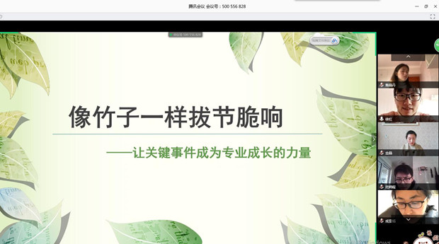 以“润泽生命,倾听花开”为追求,以“自主申报,主动发展”为基础,结合我园课程游戏化推进过程中的真问题、真研究,3月5日下午,龙虎塘街道中心幼儿园全体教师又一次集聚腾讯会议室,通过分组“线上教研”开展了草根专家分享交流会。 学——草根分享会 园本培训前,李猛、周雁南、王志薇三位老师花了大量心血,基于实践中的疑点难点,从“观察、记录、问卷星”等方面,学习结合实践提前做好相关ppt,提前录制好讲座视频发给各工作室主持人。培训活动中五大工作室分别组建会议房间,视频分享,线上教研。王志薇老师从会议记录、会议笔记以及幼儿日常记录三大版块具体阐述,给教师今后的记录工作有了实质性的指导。周雁南老师利用自身特长,借助一个个大数据就“如何用好问卷星”给我们上了生动的一课。李猛作为一名新晋男幼师,在“如何写好观察记录”有着自己独特的见解和深入的实践,在一个个有血有肉的案例分析中闪现智慧的光芒。 研——互动进行时 草根讲座的内容接地气、操作有途径,让与参会老师形成共鸣。大家结合汇报“看别人想自己”,紧扣本次活动互动话题,对接工作实践各抒己见,尤其是“二维码”记录方式的使用、疫情防控下问卷星对导学活动进行调查评价的研讨,更是大家重点探讨的方向。陈婵洁、赵燕波、周媛、金晶、肖欢等多位老师结合疫情当下实际情况拓宽思路、多次发言,给出实用的建议。一段段高质量的对话在预约发言和自主发言的结合中迸发,给今后的课程推进、家长工作开展拓展了很多新思路。 点——课程游戏化 会议最后,课程研训中心的五位主任分别紧抓关键词“课程游戏化”及“教师专业成长”进行总结提升,鼓励教师要用敏锐的研究视角和扎实的实践研究去思考问题,在实践中跟进优化、调整解决,并梳理经验,让日常的实践工作成为一个个专业发展的关键事件,积蓄成长的力量,向像竹子一样拔节脆响,为课程质量及专业发展助力。 抗“疫”时期,龙幼的教研场因老师们共同的用心参与而精彩!本次草根讲坛活动让有特长的龙幼“大家”们走上专家讲台施展才华,也给教师提供最适切、最实效的培训,努力达到课程推进和教师发展的双赢局面。期待今天的学习能更好地实现从技术的支持到实践的运用,在后续每一日的实践中得到见证! 撰稿:胡爱琴 摄影:各工作室教师 审核:潘雯雯 |