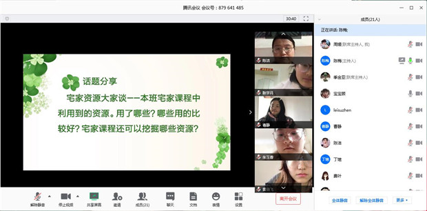 课程资源既是形成课程的因素来源与基本要素,也是课程组织设计与实施评价的根本条件。假期中,龙虎塘街道中心幼儿园集思广益,充分挖掘资源,开展“龙娃宅家课程”。而课程的丰富程度和实施效果依赖于课程资源开发利用的水平,3月13日,资源工作室的全体成员开展了本次“线上教研”活动。 篇章一:宅家游戏重现,梳理课程资源 受到新冠病毒的影响,本学期开学时间延后。但是“停课不停学”,龙幼的微信公众号每天都有满满的课程干货,幼儿的居家生活也变得丰富多彩。会议伊始,一个宅家小游戏充分调动了大家的思维,大家一起探讨了“宅家课程”所利用到的各种资源:人力资源、自然资源、社区资源还有文化资源等等,相互补充,在梳理疫情期间资源利用的同时,也对资源的深层挖掘开展了讨论。 篇章二:期初课程思辨,拓展资源利用 明媚的春天已经来到,我们也终将冲破疫情的浓雾迎来温暖的阳光。那么疫情过后,在这样特定的背景下,我们能如何充分利用家长资源和社区资源呢?会议中,老师们踊跃发言,分别基于孩子的年龄特征、获取的已有经验,对各类资源的再开发进行了深入思考。疫情虽然是残酷的,但是疫情留给我们教育工作者的教育契机却是鲜活的。老师要做个生活中的有心人,充分利用这次疫情,卷入各方资源,引发幼儿对生命的思考,对自然的关注。 篇章三:工作计划预设,关注资源价值 会议最后,陈梅老师分享了工作室这学期的工作计划,使每位成员明确了工作目标。而顾科望副主任也再次向大家强调了所有的工作都需要落脚于“三个一”,即每月一次的外出实践、每半个月一次的植物观察、每周一次的材料整理。今天的会议不仅让老师们梳理了这段时间“宅家课程”资源的利用,同时对后续工作也有了一些规划。更重要的是让大家关注到资源的长期价值,从幼儿出发,落脚于幼儿的经验获得、能力提升,发挥资源的潜在与外在的价值。 龙幼教师将继续用孩童般好奇的心,看一看、试一试、理一理,用可显的资源走近童心,追寻优质课程! 撰稿:费叶 截图摄影:周媛 审核:潘雯雯