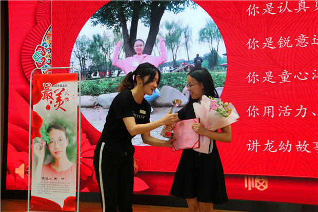 迎着一缕夏风,伴着彩蝶的飞舞,龙幼绽放出了绚丽多姿的花容,他们用沁人的芳香,飘逸着七月的浪漫。让我们随着一地的花香,静静地徜徉在夏天的馨香味道中,感受龙幼的“最美”。 每月巡礼,共享昔日芳华 智慧工作是快乐的源泉,用心工作是灵魂的交汇,浪漫夏季,龙幼的老师们用满腔的热情开展每一天的工作,在这涌现出了许多最美人物。有用心筹备毕业典礼陪伴幼儿精彩成长的大班级组老师;有充满朝气的活力新生代和勇挑重担的稳重中生代;有潜力男教师、能干辣妈组、品质后勤团……他们涵盖龙幼每个岗位,“不忘初心、牢记使命”永远照耀大家前行。有付出就会有收获,相信龙幼的每个人都能用自己的智慧和勤劳,让幼儿园的每一个角落花开灿烂。 视频分享,共赏身边典范 回首过去的2019,龙幼的每个人都在用自己的努力和奋斗感动着龙幼,也诠释了“润泽生命、倾听花开”的教育理想和追求。续接上学期末开展的“巡礼年度最美,致敬幼教有心人”活动,今天我们欢聚一起,揭晓迟来的年度最美人物,并举行了颁奖仪式。吴紫阳副园长带领全体龙幼人共同回顾来2019年感动龙幼人物评选短片,他们主要分为活力新生组、创新魅力组、资深务实组。全体龙幼人在视频中重温积极向上的事迹,感受身边榜样的力量! 最美传递,龙幼精神传承 到底花落谁家?在激动人心的时刻,答案逐一揭晓:有全情陪伴幼儿成长的费叶老师;有全力做优公众号品牌的肖欢老师;有十年完美蜕变成长的汪曙老师;有蕙质兰心环创达人的朱磊老师;有不断追求品质保育的孔红梅老师,有坚持责任为伴的潘雯雯老师……当上一年度的“最美人物”将沉甸甸的奖杯传递至新一轮的“最美”时,这是一种优秀与感动的美好传递,也是龙幼精神与力量的最好传承。 年度最美人物是学校文化最生动的代言人和践行者。他们用实际行动告诉大家什么是有梦想、有追求、有激情!有一种付出,叫做奉献;有一种精神,叫做坚韧;有一种习惯,叫做优秀,巡礼年度最美,致敬幼教有心人。 龙幼人的每一天都是不断积累、努力向前的一天,犹如着烈日的骄阳,带给我们无限的期待与梦想,相信龙幼的每个人都会心怀梦想,乘风破浪,聚力前行,成为舞台上那颗最耀眼的明星! 撰稿:张悠 摄影:颜梦迪 审核:潘雯雯 |