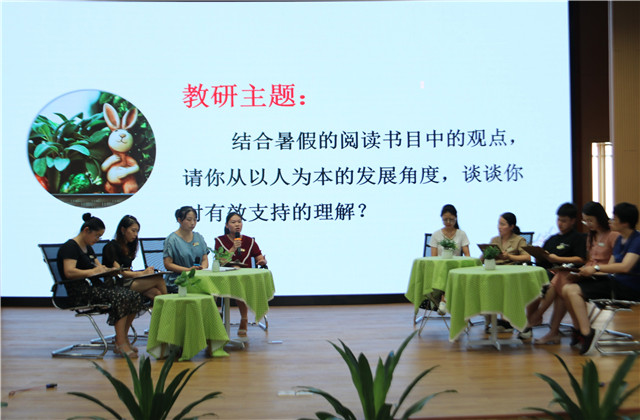阅读使人进步。暑期休闲之余,每位教师都会拿着一本书,品一杯香茗,细细体味书中的韵味。根据教师需要,暑期阅读的书目也进行了分层,从符合一线教师的《童年的秘密》到适合行政的《忠告中层》,不同的书籍打开了不同的探索世界。2020年8月28日上午,龙虎塘街道中心幼儿园全体教师开展了暑期阅读分享会。 品书香之气,悟教育之道 作为一线教师,曹静老师在阅读《童年的秘密》时,结合自己带班经验,有所感悟:在理解与捕捉幼儿敏感期的同时,给孩子营造适合的环境氛围,支持孩子多元体验,促进孩子能力发展,才能达到幼儿最好发展的成长公式;季金亚组长在参加2020年暑期常州市教育系统领导干部高级研修班后有感,以《三“追”勤思学,三“转”慧悦行》为题,从真认识、真落实、真体验三方面,寻找从浅到深、从读到懂、从加到减的转变,结合自己级组工作,寻找新的角度看待压力问题,新增新的解决测量,让理论变为时间,将所学为己所用。 参话题之意,寻教育之理 为让更多老师能够参与心得分享,同时将自己的思考与工作相结合,本次活动还采用了无组织教研的形式。教师们围绕话题“从以人为本的发展角度,谈谈你对有效支持的理解”开始了研讨。在三分钟准备过后,教师们侃侃而谈:付帅老师从一线出发,以幼儿午睡为例,阐述了自己对于“以人为本”以及“有效支持”的思考;陈梅组长从观察解读工作室的角度切入,将“人”的角度从幼儿转向教师的观察方法上,为后续的工作提出新的发展路线;朱宏萍主任从乐享课程条线出发,围绕“以人为本”,针对即将开展的国庆活动提出了供教师参考的鹰架支持策略……台上研讨热烈,台下也跃跃欲试,因此,本次活动中的新样式:在线教研感悟应运而生。在思想碰撞的过程中,每位老师都将自己的想法在线阐述。也许百字有余,也许分出论点,不管怎样,在互动的过程中每个人都有收获,对教育的理解更深了一层。 温书籍之蕴,享教育之趣 他山之石,可以攻玉。最后,季雪芬主任将其他几本书籍进行书香分享:《童年的秘密》中,蒙台梭利强调了尊重孩子,敬畏孩子,孩子是成人之父;《早期教育中的生成课程》中,苏珊·史黛丝从实践的角度,以教师的事件经验为例,以观察为切入点,逐步深入到课程项目本身;《忠告中层》一书,则重点推介了支持性的管理风格。书籍浸润心灵,爱读书的老师往往善于思考、才学丰厚,内心也豁达、快乐、细腻、温和。不同的书籍打开不同的天窗,让温暖的阳光洒下,泛出爱的光芒。 读书助力教师的专业成长,也让我们拥有“诗与远方”。新学期,让我们一起享受阅读,享受学习,做一个愿意支持、善于支持的专业性、研究性的教师。
