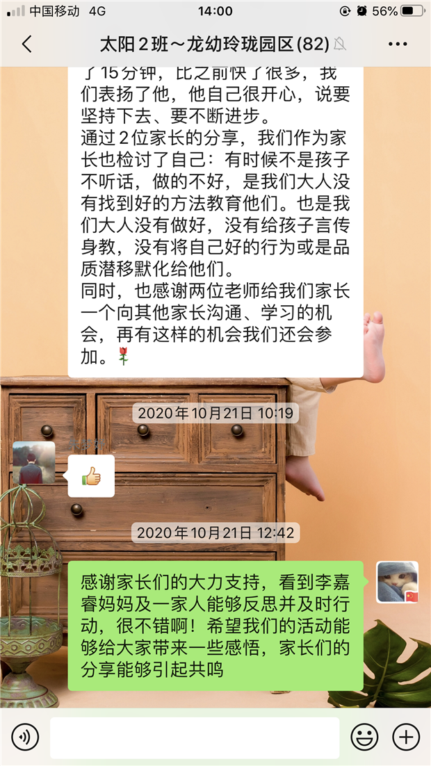 十月的风透着别样的亲切,书写着一首首小诗,写着和孩子成长的故事,写着和家长相知的美好!龙虎塘街道中心幼儿园迎来了开学后的第一轮互动式家长会。 游戏、碰撞、共勉,一场场别开生面的互动式家长会开始啦! 篇章一:样板班级试行,以点带面 围绕家长困惑,基于幼儿需求,小班聚焦自理能力、中班侧重品质形成、大班关注能力培养,在确定主题的基础上老师同步制定了符合本班幼儿和家长的详细方案。龙幼四个园区11个样板班级开始了小型、多样的互动式家长会的初探:疫情防控的常态管理,园家活动保驾护航;温馨环境的用心打造,氤氲温暖触动心弦;助推点亮家长资源,勇于分享育儿经验;围绕孩子真实案例,聚焦话题互动探讨……一盏盏亮灯的教室里都在上演一场有温度、有情怀的故事。平行班的老师、虚心学习的年轻教师也相约一起走进了现场观摩学习,为后期本班开展活动积累实战经验。 篇章二:级组成员研讨,互动优化 样本班级开展后,级组成员及时开展了研讨会议,在同步反馈活动注意要点的基础上,大家面对面提出了自己的想法:有细节的再优化、有个性化的策略提升、有不同形式的再思考……老师们在长程架构互动式家长会的实施路径中,关注家长的需求,在互动交流、话题研讨、分享策略等方面建立了交流平台,共同为幼儿的发展出谋划策,也为接下来更好地开展活动打下夯实的基础。 篇章三:四园全面铺开,共探新路 龙幼是一个大家庭,每个班级都是不可或缺的一员。经过样本班级的尝试,互动式家长会就这样在四园全面铺开。家长们提前根据疫情防控要求准备材料,走进了熟悉而又陌生的班级,与老师开启了一场育儿交流之旅。大家在“游戏式体验”、“讨论教育话题”、“欣赏视频短片”、“感悟故事心得”等环节中互动交流、体验感悟、展示分享。通过创新家长会形式,增强园家的互动,提升家长的参与度。在各班的教室里,欢歌笑语齐聚一堂,共同分享育儿经验,充分体验互动式家长会的精彩…… 幼儿是一颗种子,而家长、幼儿园便是种子生根发芽的土壤。愿这片土壤在互动交流的过程中不断深厚,不断积发养料,让幼儿成长为参天大树,寻最美的方向,做最好的自己! 撰稿:胡爱琴 摄影:各班教师 审核:潘雯雯 |