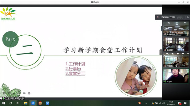 为进一步加强学校食堂管理,严格贯彻执行《食品安全法》,使我园食堂管理科学化、规范化,3月2日下午,龙虎塘街道中心幼儿园组织四园区食堂人员进行了线上专项培训会。 活动伊始,万玉珍副主任带着大家一起观看了米其林摆盘食谱,在轻松愉悦的氛围中感知菜肴摆盘创意,给大家工作中的每日菜谱介绍摆盘提供支架和灵感。接着,万主任以《在内控建设中发挥制度优势,实现纵深式发展》为题,从“严标准规范膳食,强制度内控质量,推进食堂品质化发展”,解读了新学期食堂工作计划。同时,结合开学至今食堂库房出入库情况,四园区总务进行了现场反馈。最后,吴亚华主任从“责任到人、规范执行、思考创新”三方面进行了总结提升,希望大家在新学期的食堂工作中做实做细,规范到位。 食堂无小事,新学期,我们将各负其责、守好阵地,以“四品”为标准,构建新样态食堂管理。