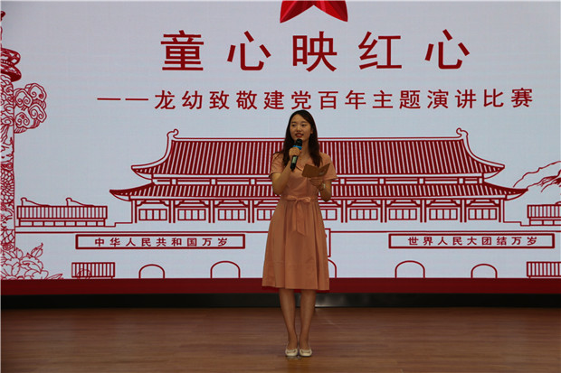 百年征程波澜壮阔,百年初心历久弥坚。借此中国共产党成立100周年华诞之际,为传承红色文化,培育家国情怀,引领广大教师学习党史悟思想,坚定信念听党话,2021年5月10日傍晚,由龙虎塘街道幼儿园团支部组织举办的“童心映红心”龙幼致敬建党百年主题演讲比赛在盘龙新园区拉开序幕。 “童心映红心”,活力现场聚才华 演讲比赛经过前期级组推选,征文撰写等系列准备,11位青年演讲选手围绕主题“童心映红心”,结合中国共产党成立一百周年,现场为大家讲述了有血有肉的儿童故事。11位选手有着各自的演讲风格,或娓娓道来、或慷慨激昂,优美的声音、丰富的表情、朴实的语言、生动的案例,把演讲比赛不断推向高潮。《育润童心、致敬百年》、《忆红色、追童心》、《童心向阳、我自成长》、《花儿向阳 童心向党》……一个个演讲故事都把大家带到了那一个个活泼泼的孩子身边,老师们追随孩子的脚步,解读童心、陪伴前行。无数童心汇聚成星河,散发着巨大力量。这些教师中不乏有工作一年的新教师,也有工作两年的新锐教师,每一位演讲选手的演讲都可圈可点,每一位演讲教师的故事都真实感人,让大家忍不住叫好点赞。 “你心映我心”,精彩点评聚智慧 演讲结束后,本次活动特邀嘉宾——龙虎塘街道行政审批局副局长严美华作为评委代表对每一位选手都进行了专业引领和点评,不仅让大家了解演讲的奥妙索证,还为大家指明了努力的方向。接着,为了让大家不忘初心、牢记使命,更好地了解党、亲近党、热爱党,本次活动还进行了赠送红色书刊仪式。严美华副局长为每一位演讲选手赠送了红色书刊,希望大家能够用好这批红色书刊,在字里行间感受党的艰苦岁月和峥嵘历程,从珍贵的历史经验中吸取智慧和力量,真正做到学史明理、学史增信、学史崇德、学史力行。 “我心映党心”,总结提升明方向 活动最后,团支部书记周雁南老师为本次活动进行总结提升,带领大家共同明晰活动的意义:演讲是我们展示内心的窗口,我们现在和以后都要永葆青年向上的姿态,悟历史沧桑,展爱国情怀,珍惜当下来之不易的幸福生活,以更坚定的信念和更饱满的热情投入到今后的工作与学习中去。作为新一代的幼教人,我们将追随儿童的脚步,助推儿童成长,在社会发展的潮流中,我们将敢做时代的弄潮儿,为社会和家庭呵护希望之花。 童心向党迎华诞,红心百年启新程。童心是一种力量,无尘无垢,无邪无恶。红心是一种精神,指引我们继承革命意志,振奋时代。童心和红心亦是我们所有幼教者的初心,龙幼全体教师定能够永远以坚定的步伐,满怀的激情,守护童心,追随红星,一起奔赴灿烂的明天! 文章:钱赟 摄影:颜梦迪 审核:潘雯雯