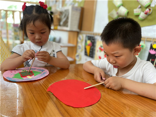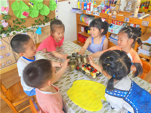 骄阳似火的盛夏,烈日炎炎,这个季节,是充满快乐的。荷花向我们露出笑脸,知了在声声叫个不停,绿荫下,充满孩子们玩耍嬉戏的声音。在这别样的浪漫时光,龙虎塘街道中心幼儿园四园区小班年级组开展了《夏天真快乐》主题性游戏活动,共赴嬉夏之约。 篇章一:做一做,别样的夏季用品 游戏是幼儿生活的主要方式,也是幼儿园教育的重要内容。炎炎夏日里,孩子们充满着好奇:夏季有哪些变化?夏季用品有哪些?追随孩子的问题和兴趣需要,老师们精心组织了丰富精彩的游戏活动。区域里,找一找夏天的变化、做一做清凉的扇子、遮阳的小伞等夏季用品;T台秀中,提前准备好自己喜爱的夏季用品,用喜欢的方式进行装扮,大胆自信的秀一秀。 篇章二:品一品,好吃的夏日水果 夏天在哪里?探秘寻找中,孩子们发现夏天有着自己的味道。夏天里,西瓜甜甜的、葡萄酸酸的、哈密瓜脆脆的、水蜜桃香香的......与水果相遇,孩子们充满好奇和期待。他们与好友相约:品尝甜甜的水果拼盘;他们在区域畅玩:用轻黏土做一片片西瓜、用彩纸画一串串葡萄,多元的材料给予幼儿更多创作的空间,这个夏天也因他们的水果故事分外精彩! 篇章三:玩一玩,缤纷的夏日游戏 夏天可以怎么玩?炎夏酷暑,在水中嬉戏自是清凉解暑最舒爽。于是,结合本班孩子的兴趣特点,老师和孩子们一起讨论关于水的游戏,商量确定游戏的规则和玩法。水枪pk赛、运水大作战、神奇吹泡泡……多姿多彩的游戏体验丰富了幼儿对水的认识和对夏天的喜爱,同时也锻炼了孩子们在户外的适应能力。 快乐的夏天悄悄来临,龙虎娃们在多元的游戏活动中体验嬉夏季带给我们的惊喜,用心感受嬉夏课程的魅力! 撰稿:孙甜甜 摄影:各班教师 审核:潘雯雯
