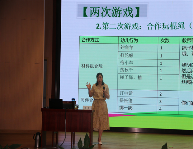 随着课程游戏化的深入践行,如何在集体教学活动中彰显游戏精神,让游戏和教学活动在环环相扣中、在紧密联系中互生互补。9月13日下午,龙虎塘街道中心幼儿园特邀常州市新北区三井街道中心幼儿园徐英园长为全体教师开展“课程游戏化背景下集体教学活动有效实施”专题讲座。 视频观摩,学他人课堂之风采 在活动前期,徐英园长就给龙幼教师分享了来自三井幼儿园几位教师的优质视频课、教案以及课件等,其中有《屁屁侦探》、《黑白俱乐部》、《斯坦利的棍子》……可谓是倾囊相授。灵动有趣的游戏化课堂,精心设计的活动环节,自由自主的课堂氛围,让龙幼教师纷纷点赞。大家仔细观摩每一集视频课,有准备地进入本次专题讲座。 问题剖析,明集体活动之价值 活动伊始,徐英园长针对当下幼儿园不重视集体教学的现状与问题,提出集体活动要更多凸显游戏价值,关注真实需求,注重游戏形式等观点。此外,她还为老师们列举虞永平、朱家雄、刘焱等几位著名教授在课程游戏化方面的指导思想,其中有:游戏不仅仅是游戏,要更多渗透游戏精神;幼儿园课程要顺应幼儿自然地发展等等,充分明确了集体活动的重要价值和不可取代的地位。 案例研讨,思课程游戏之变革 游戏化教学是指以游戏为手段,贯穿幼儿园的整个教学活动,教学的组织形式。讲座中徐园长提出了“对集体教学的新认知”以及“大课程、大游戏的理念”,并围绕“集体教学从哪里来?集体教学如何游戏化?集体游戏到哪里去?”这三个问题,结合前期分享的优质教案和课件,详细阐述了课程游戏化的可实施路径,为教师们今后在集体化教学活动中的设计与实施指明方向。 推进幼儿园课程游戏化,保证集体教学活动的有效性,关键在于教师。教师只有不断学习、实践,提升自身的专业水平,树立科学的儿童观、课程观,从而促进幼儿与教师的协同发展。 撰稿:李宇梦 摄影:李宇梦 审核:潘雯雯 |